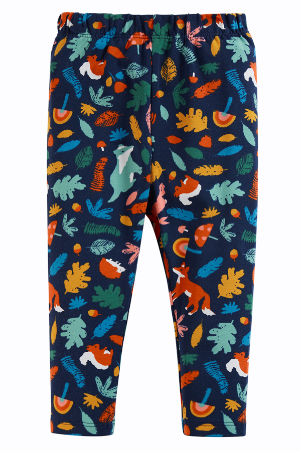 In a Wild Woodland print these Libby Printed Leggings from Frugi are ideal for layering under dresses and skirts. With a comfy elasticated waistband these full-length leggings are made from soft organic cotton with a touch of stretchy elastane to h