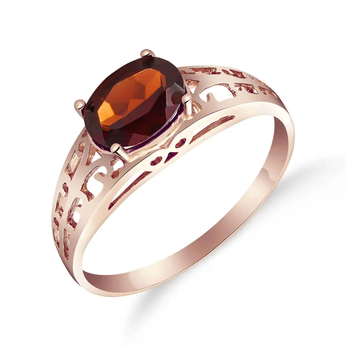 Garnet Ring handcrafted in solid 18ct rose gold. Single 1.15 ct genuine garnet. Oval cut. Available from sizes H to Z including half sizes. Size: 5.3 mm (0.21 in). Material: 18ct Rose Gold. Total metal weight: 2.4 gr. 1 oval cut garnet (7 x 5 mm) = 1.15 ct. Colour: Red. Stone cut: Oval Cut. Anniversary: 2nd Anniversary. Birthstone: January.