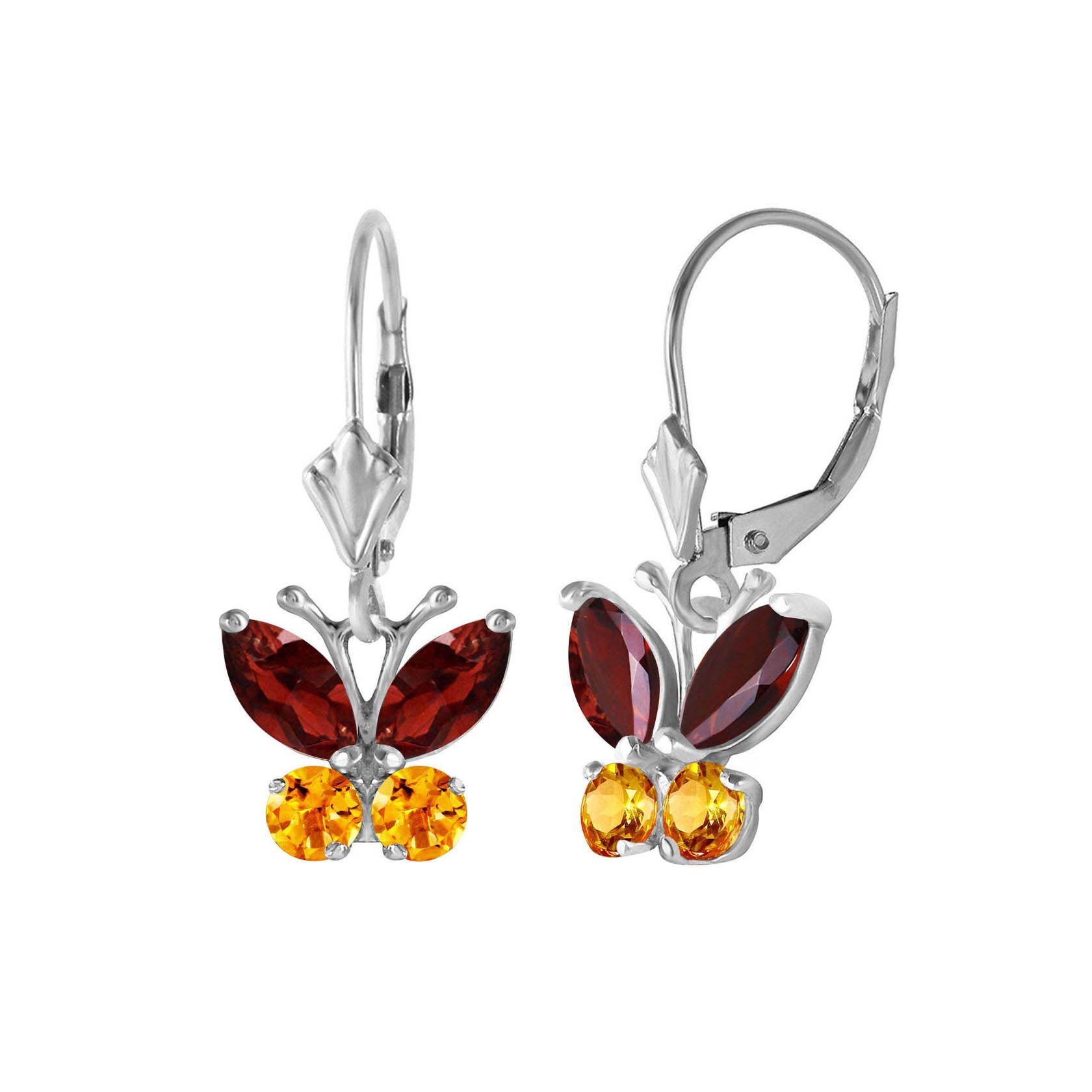 Garnet & Citrine Leverback Butterfly Earrings handcrafted in solid white gold. Eight gemstones, total 1.24 ct for both earrings combined. Marquise cut. Size: 10.7 x 23.6 mm (0.42 x 0.93 in). Material: 9ct White Gold. Total metal weight: 1.6 gr. 4 marquise cut garnets (6 x 3 mm) = 0.85 ct total for pair. 4 round cut citrines (3 x 3 mm) = 0.39 ct total for pair. Colour: Red. Stone cut: Marquise Cut. Anniversary: 2nd Anniversary. Birthstone: January.