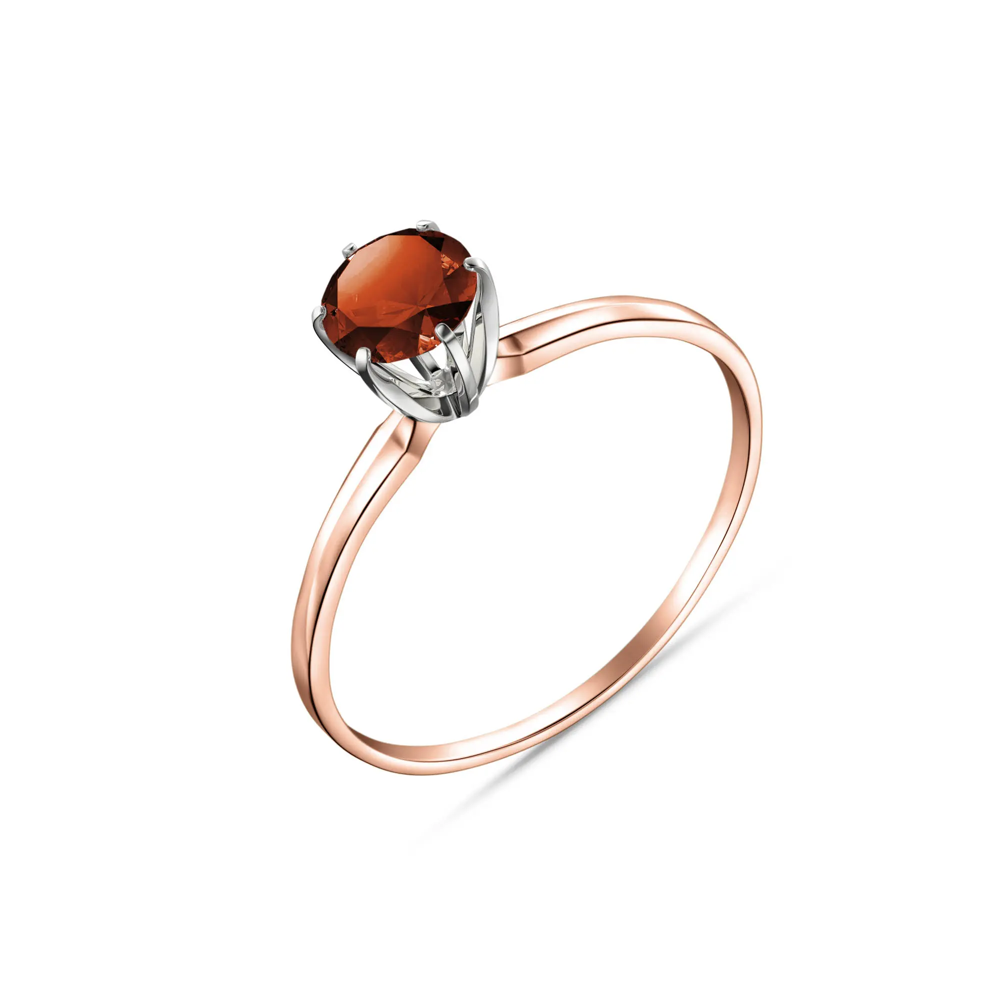 Garnet Ring handcrafted in solid 18ct rose gold. Single 0.65 ct genuine garnet. Round cut. Available from sizes H to Z including half sizes. Size: 5.8 mm (0.23 in). Material: 18ct Rose Gold. Total metal weight: 2.0 gr. 1 round cut garnet (5 x 5 mm) = 0.65 ct. Colour: Red. Stone cut: Round Cut. Anniversary: 2nd Anniversary. Birthstone: January.