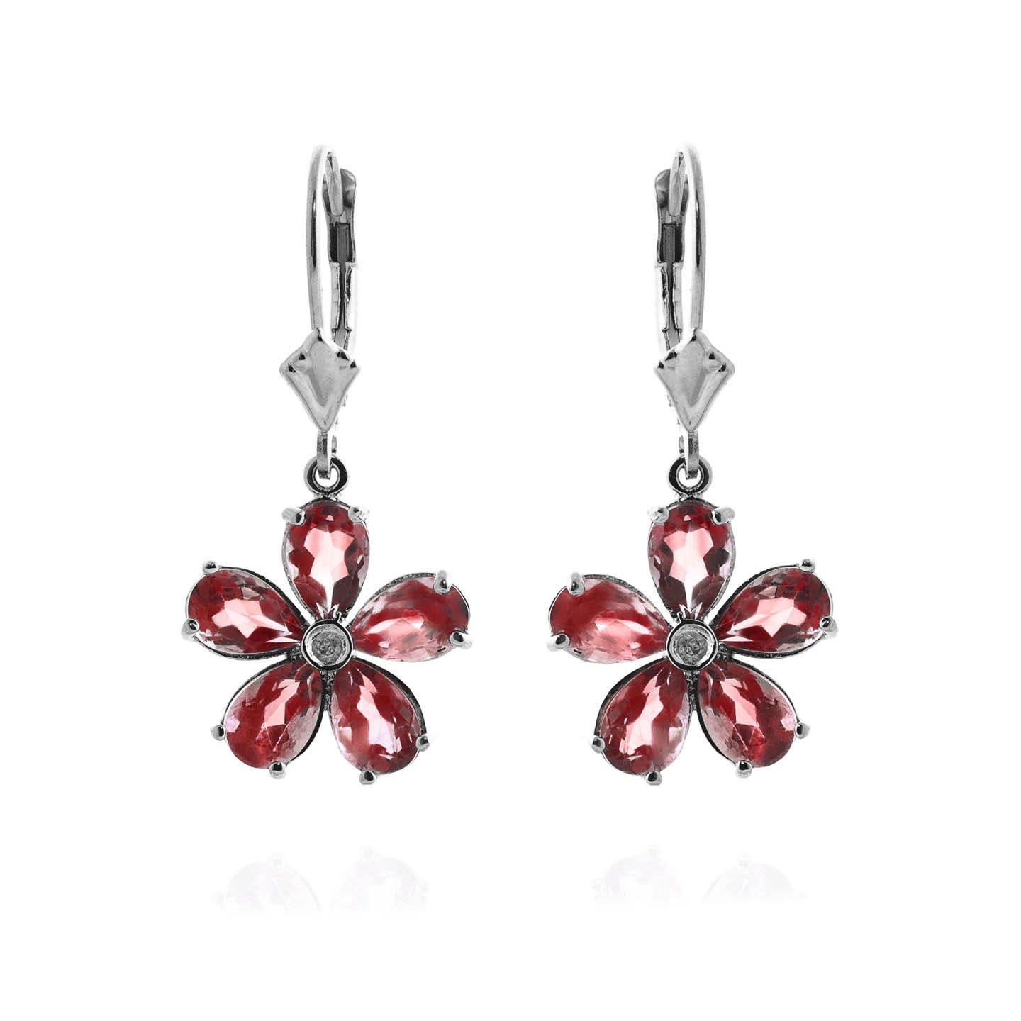 Garnet & Diamond Leverback Earrings handcrafted in solid white gold. Ten genuine garnets, total 4.4 ct, two diamonds, total 0.03 ct for both earrings combined. Pear cut. Size: 14.2 x 30.2 mm (0.56 x 1.19 in). Material: 9ct White Gold. Total metal weight: 3.1 gr. 10 pear cut garnets (6 x 4 mm) = 4.4 ct total for pair. 2 round cut diamonds (K colour, SI1 clarity) = 0.03 ct total for pair. Colour: Red. Stone cut: Pear Cut. Anniversary: 2nd Anniversary. Birthstone: January.