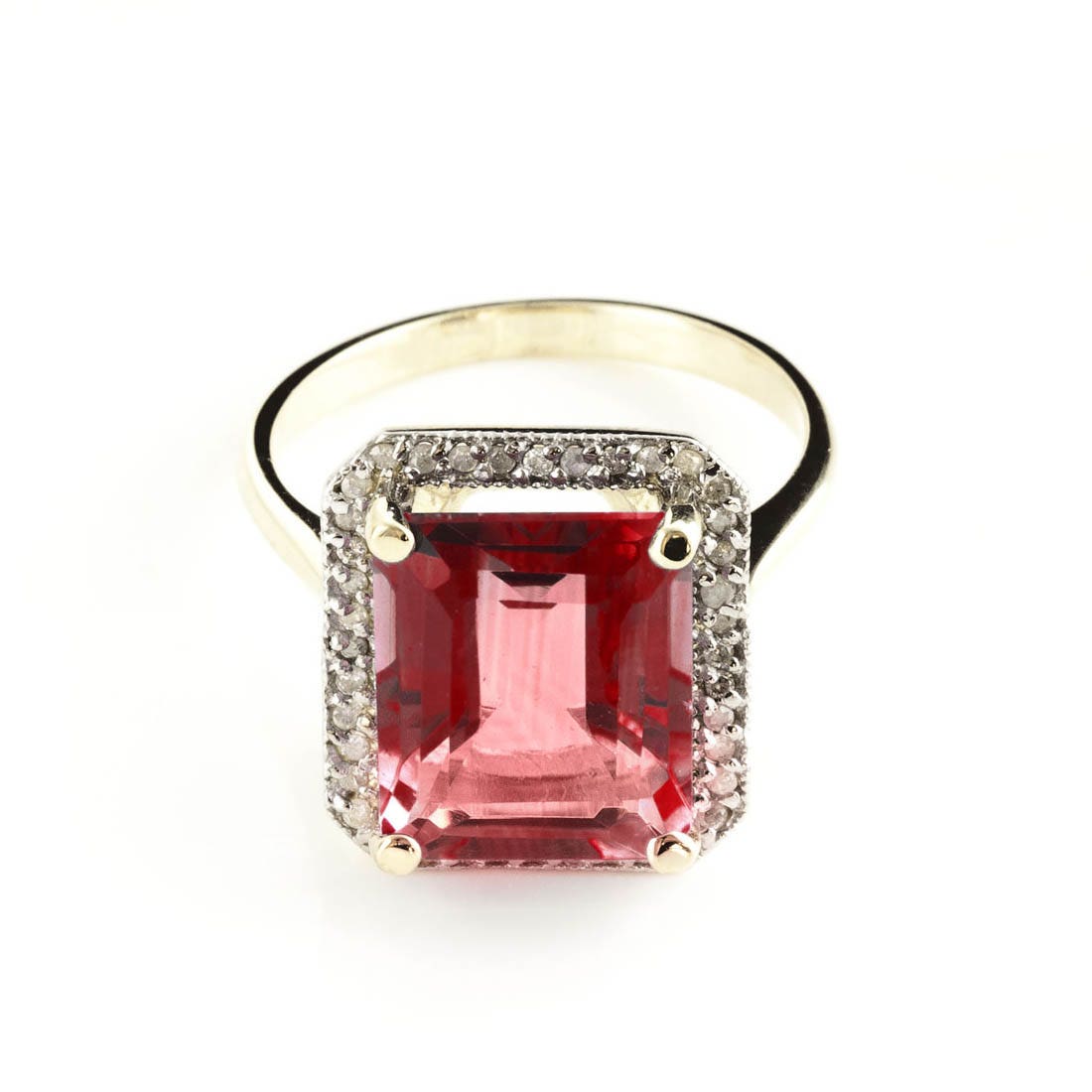 Garnet & Diamond Ring handcrafted in solid 18ct gold. Single 7.5 ct genuine garnet, 40 diamonds, total 0.2 ct. Emerald cut. Available from sizes H to Z including half sizes. Size: 15.7 mm (0.62 in). Material: 18ct Gold. Total metal weight: 5.4 gr. 1 emerald cut garnet (12 x 10 mm) = 7.5 ct. 40 round cut diamonds (K colour, I3 clarity) = 0.2 ct total. Colour: Red. Stone cut: Emerald Cut. Anniversary: 2nd Anniversary. Birthstone: January.