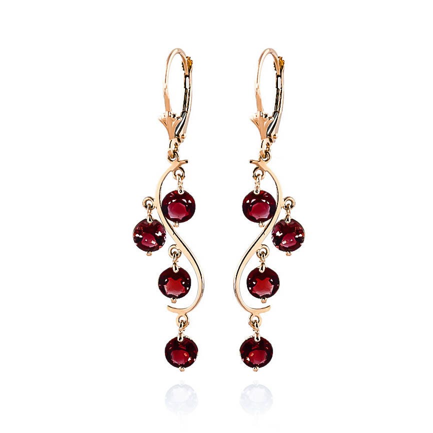 Garnet Chandelierdrop Earrings handcrafted in rose gold plated 9ct gold. Eight genuine garnets, total 4.95 ct for both earrings combined. Round cut. Size: 10.7 x 47.5 mm (0.42 x 1.87 in). Material: 9ct Rose Gold. Total metal weight: 3.0 gr. 8 round cut garnets (5 x 5 mm) = 4.95 ct total for pair. Colour: Red. Stone cut: Round Cut. Anniversary: 2nd Anniversary. Birthstone: January.