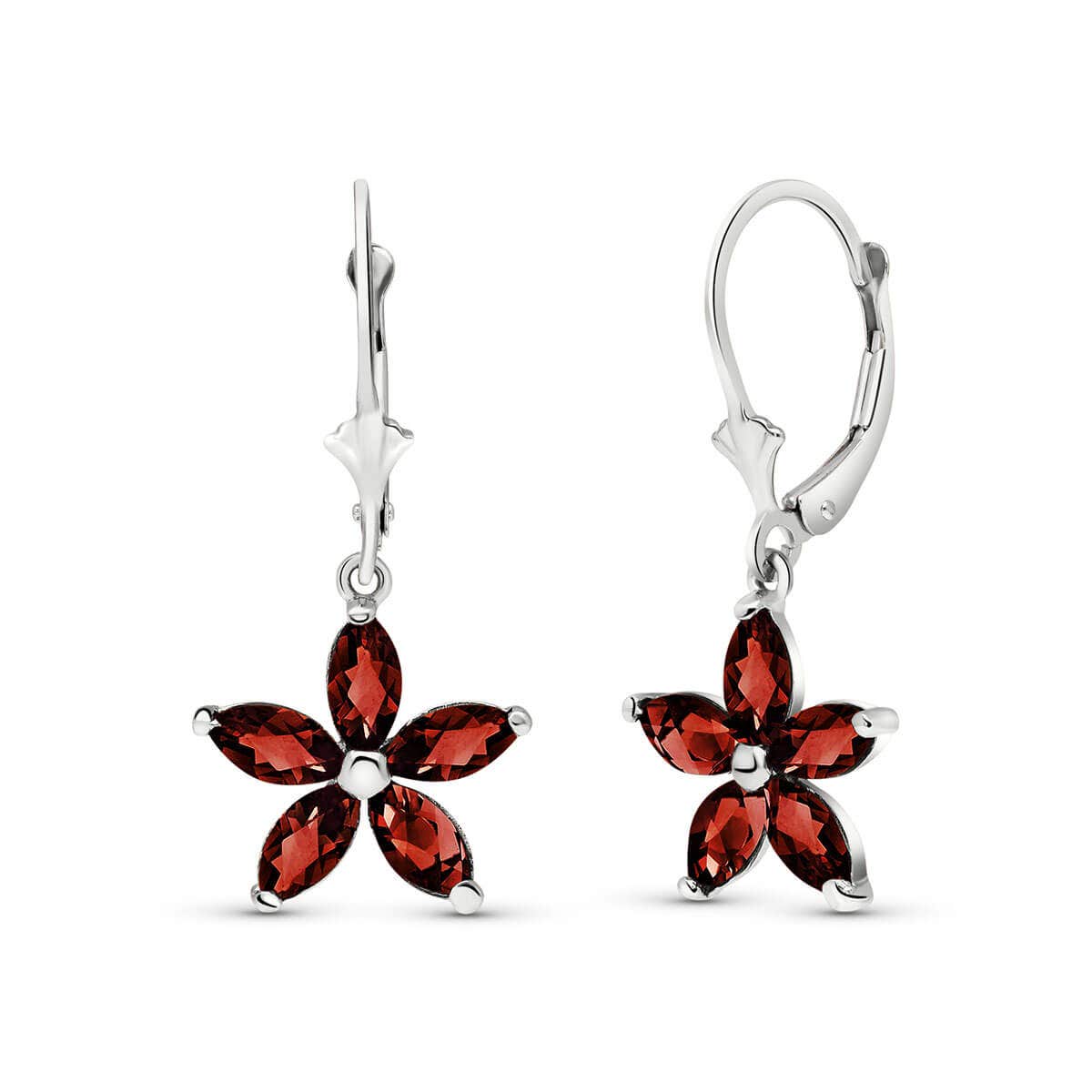 Garnet Leverback Earrings handcrafted in solid white gold. Ten genuine garnets, total 2.8 ct for both earrings combined. Marquise cut. Size: 13 x 30 mm (0.51 x 1.18 in). Material: 9ct White Gold. Total metal weight: 2.2 gr. 10 marquise cut garnets (6 x 3 mm) = 2.8 ct total for pair. Colour: Red. Stone cut: Marquise Cut. Anniversary: 2nd Anniversary. Birthstone: January.