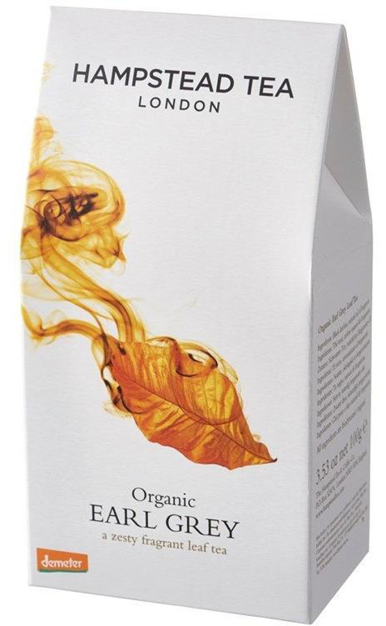 100 grams organic vegan friendly Hampstead Tea Earl Grey Loose Leaf Tea.This product is suitable for a gluten free diet.Teabags are a Natureflex pouch which is home compostable.