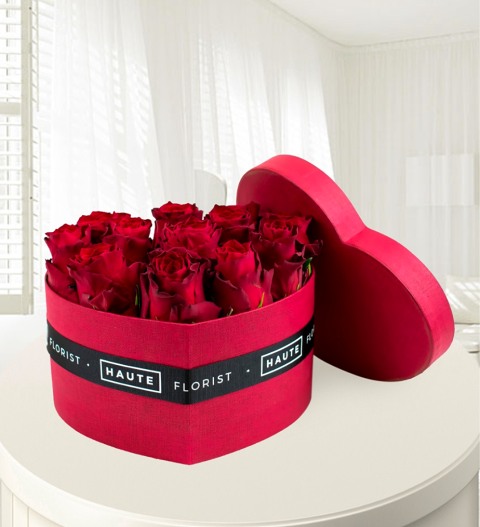 Heart Hat Box – Haute Florist – Red Roses – Luxury Red Roses – Roses in a Hat Box – Luxury Flowers