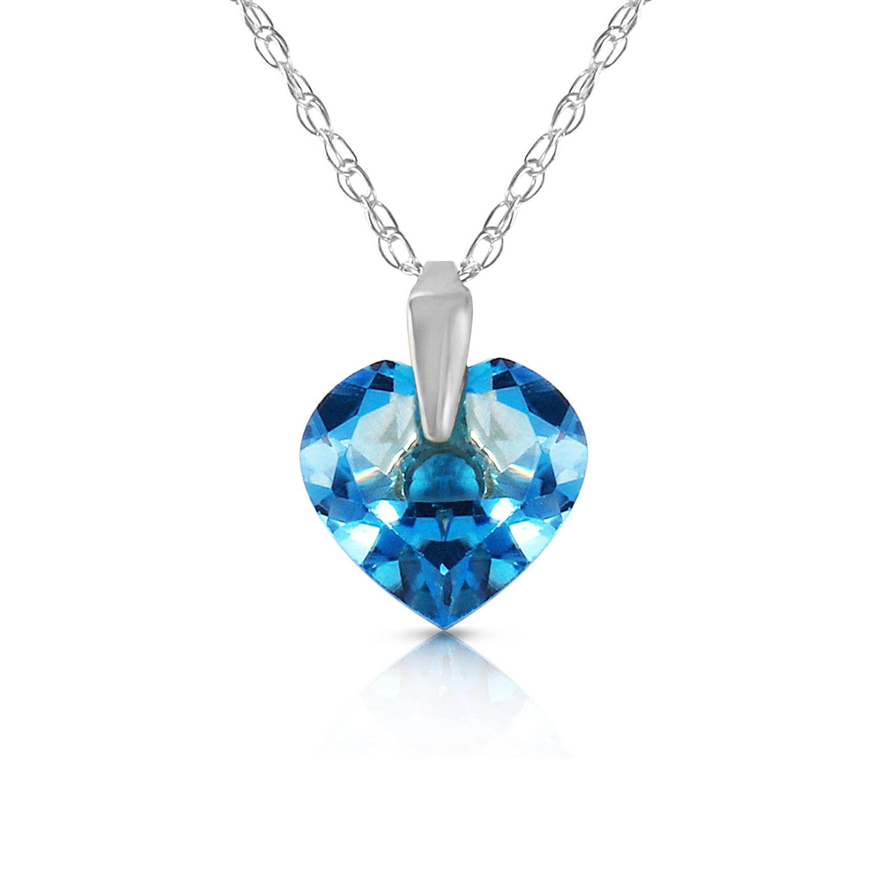 Blue Topaz Pendant Necklace handcrafted in solid white gold. Single 1.15 ct genuine topaz. Heart shaped. The pendant is suspended from a white gold double link rope chain with spring clasp. Size: 7.1 x 8.1 mm (0.28 x 0.32 in). Material: 9ct White Gold. Total metal weight: 1.34 gr. 1 heart shaped blue topaz (7 x 7 mm) = 1.15 ct. Colour: Blue. Stone cut: Heart Shaped. Anniversary: 4th Anniversary. Birthstone: November.