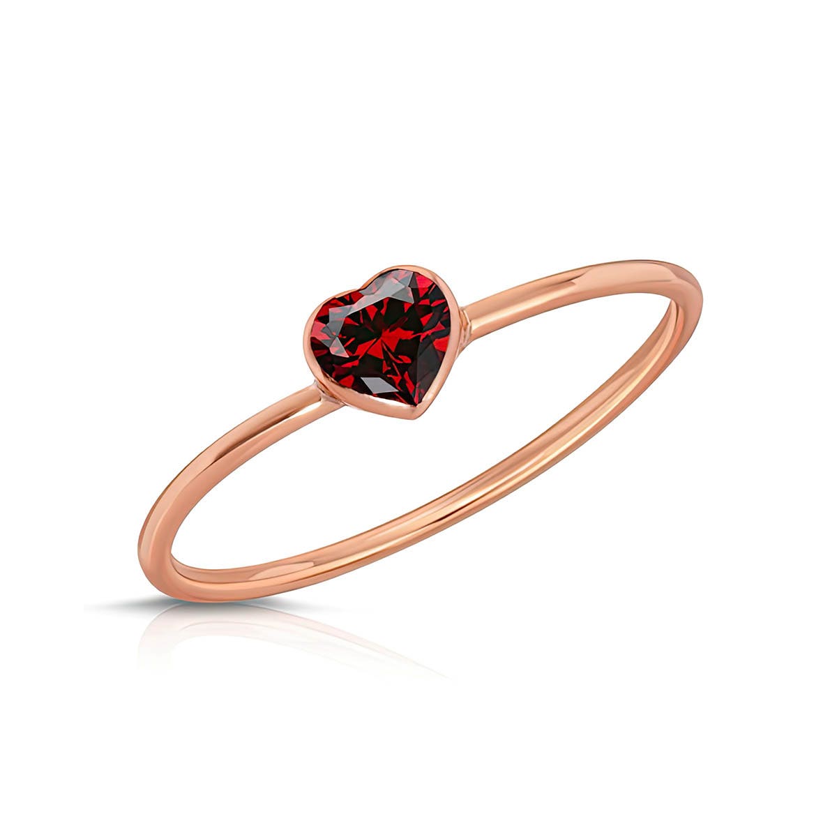 Garnet Ring handcrafted in 9ct Rose Gold. Single 0.25 ct genuine garnet. Heart shaped. Available from sizes H to Z including half sizes. Size: 1 x 19.8 mm (0.04 x 0.78 in). Material: 9ct Rose Gold. Total metal weight: 0.5 gr. 1 heart shaped garnet (4 x 4 mm) = 0.25 ct. Colour: Red. Stone cut: Heart shaped. Anniversary: 2nd Anniversary. Birthstone: January.