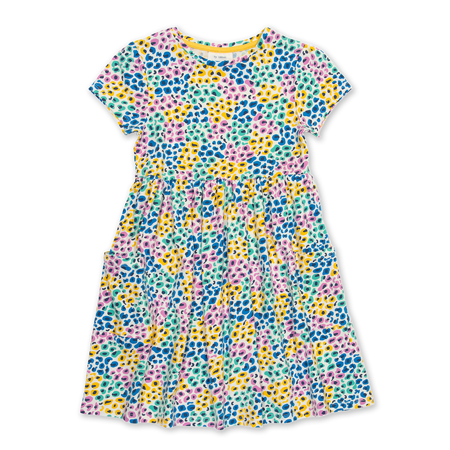 Calling all colourful leopard lovers! This gorgeous panthera print dress delivers practicality an on-trend print and so much comfort. Made in soft organic cotton jersey with a little bit of stretch for great drape and next-to-skin softness. Featuri