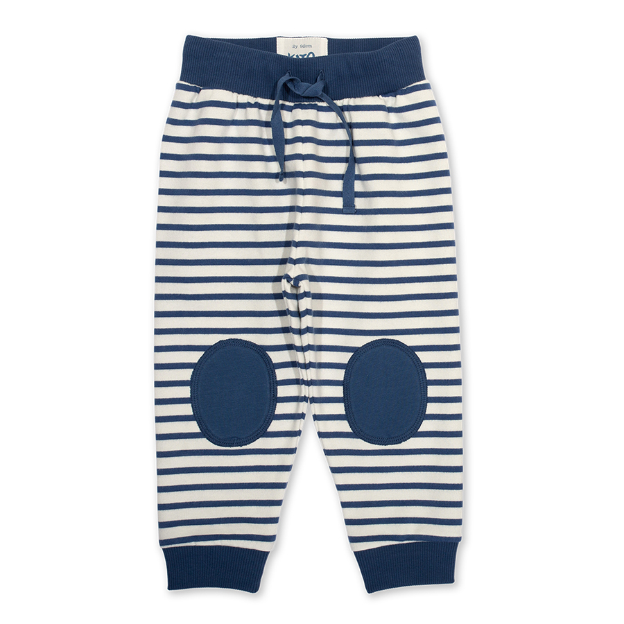 Ready steady go in these navy and cream yarn dyed stripe joggers! With navy knee patches to give a fun look whilst protecting your little one’s knees from the scrapes and scuffs of adventuring. Combine with any of Kite’s coordinating t-shirts for