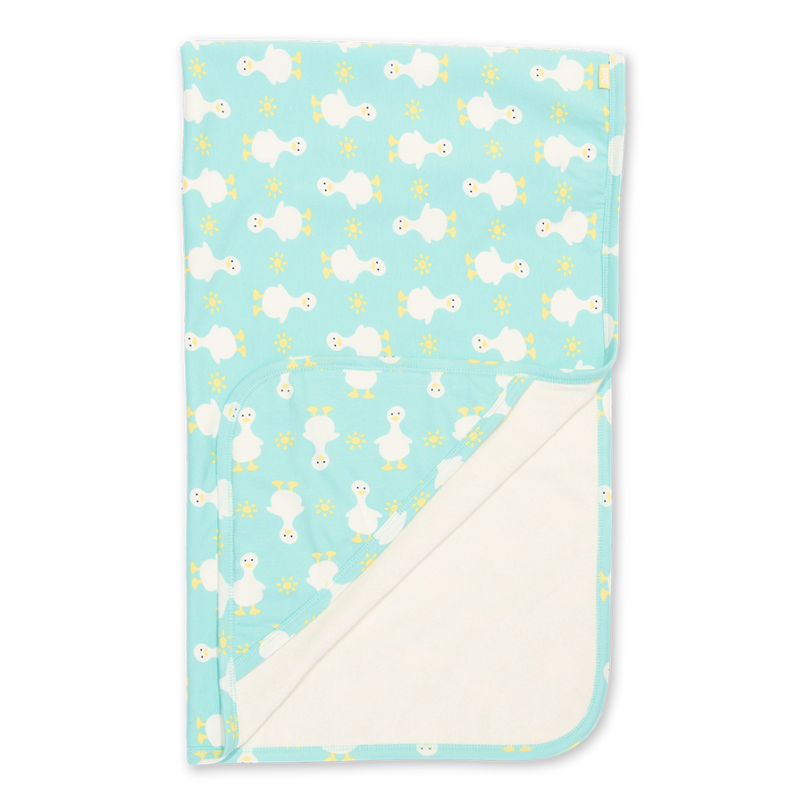 Perfect for post-bath cuddles and naptime snuggles! This organic cotton wrap features a gorgeous sunny duck print on one side and a soft and absorbent cream towelling on the other. The towelling-lined hood also adds extra snuggly comfort. Perfect for