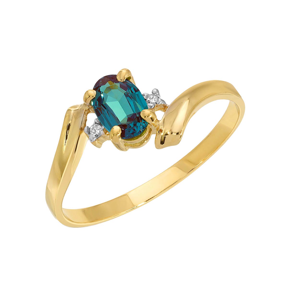 The beautifully designed embrace ring includes two round brilliant cut diamonds that elegantly sit on either side of a superior lab grown alexandrite. Precision cut into a oval shape, the stone is almost internally flawless and boasts terrific colour changing qualities. Take a look at alexandrite in natural light and you’ll see intense flashes of emerald green mixed with hints of blue. Observe alexandrite in incandescent light and the stone will change to a deep purple. Encased in solid 18ct gold to accentuate the beauty of these two stones, the sleek band perfectly complements the alexandrite and diamond.Single 0.55ct lab grown alexandrite. Two diamonds 1-3/K-M, totalling 0.02ct. Oval cut. Available in sizes A-Z including half sizes.Lab grown gemstones hold the same optical and physical properties as their natural counterparts and offer a superlative cut, colour and clarity. Size: 7.9 mm (0.31 in). Material: 18ct Gold. Total metal weight: 1.5 gr. 1 oval cut lab grown alexandrite (6 x 4 mm) = 0.55 ct. 2 round cut diamonds (K colour, I3 clarity) = 0.02 ct total. Colour: Colour Changing. Stone cut: Oval Cut. Anniversary: 55th Anniversary. Birthstone: June.