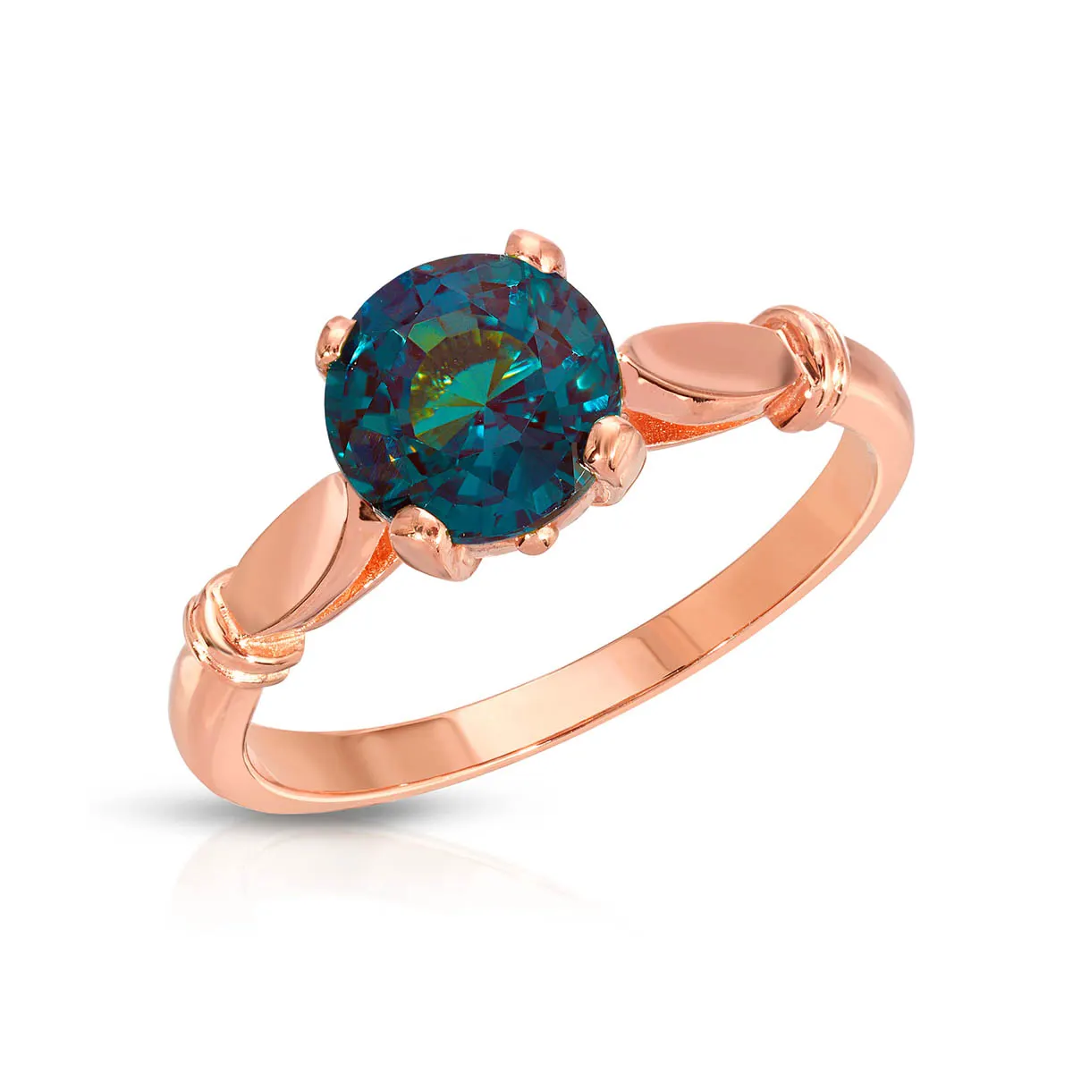A single round brilliant cut lab grown alexandrite sits on top of this beautifully designed solitaire ring. Precision cut into a round shape, the stone is almost internally flawless and boasts terrific colour changing qualities. Take a look at alexandrite in natural light and you’ll see intense flashes of emerald green mixed with hints of blue. Observe alexandrite in incandescent light and the stone will change to a deep purple. Slight detail on the solid 18ct rose gold band shoulders doesn’t detract attention from the alexandrite but offers subtle design and balance.Single 1.75ct lab grown alexandrite. Round cut. Available in sizes A-Z including half sizes.Lab grown gemstones hold the same optical and physical properties as their natural counterparts and offer a superlative cut, colour and clarity. Size: 7.6 mm (0.3 in). Material: 18ct Rose Gold. Total metal weight: 3.2 gr. 1 round cut lab grown alexandrite (7 x 7 mm) = 1.75 ct. Colour: Colour Changing. Stone cut: Round Cut. Anniversary: 55th Anniversary. Birthstone: June.