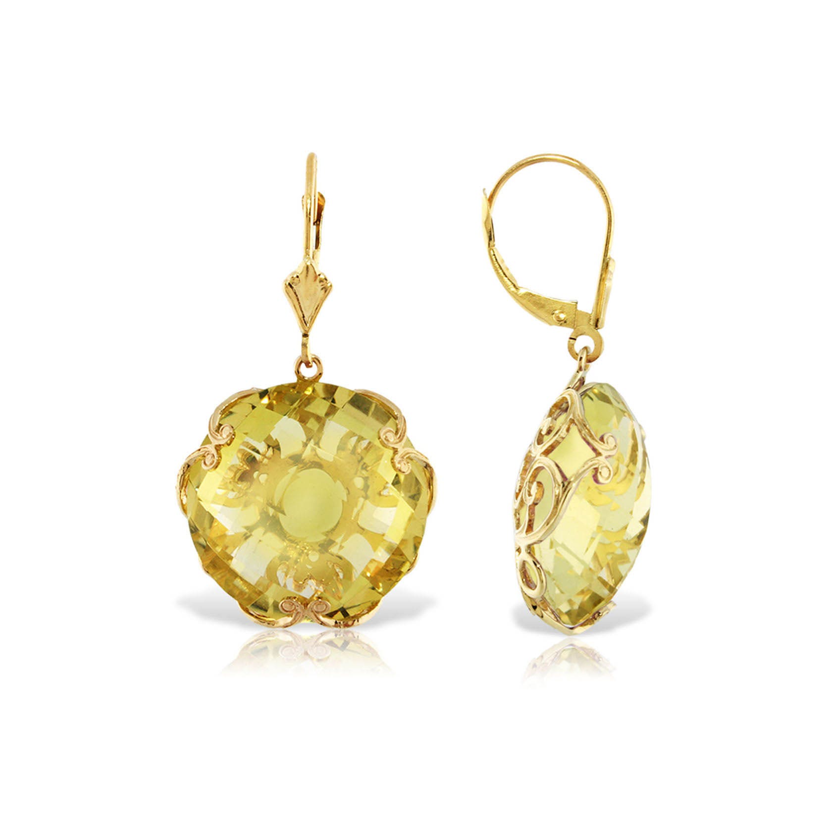 Lemon Quartz Leverback Earrings handcrafted in solid gold. Two genuine quartz, total 34 ct for both earrings combined. Round cut. Size: 20.1 x 36.1 mm (0.79 x 1.42 in). Material: 9ct Gold. Total metal weight: 7.7 gr. 2 round cut lemon quartz (18 x 18 mm) = 34 ct total for pair. Colour: Yellow. Stone cut: Round Cut.