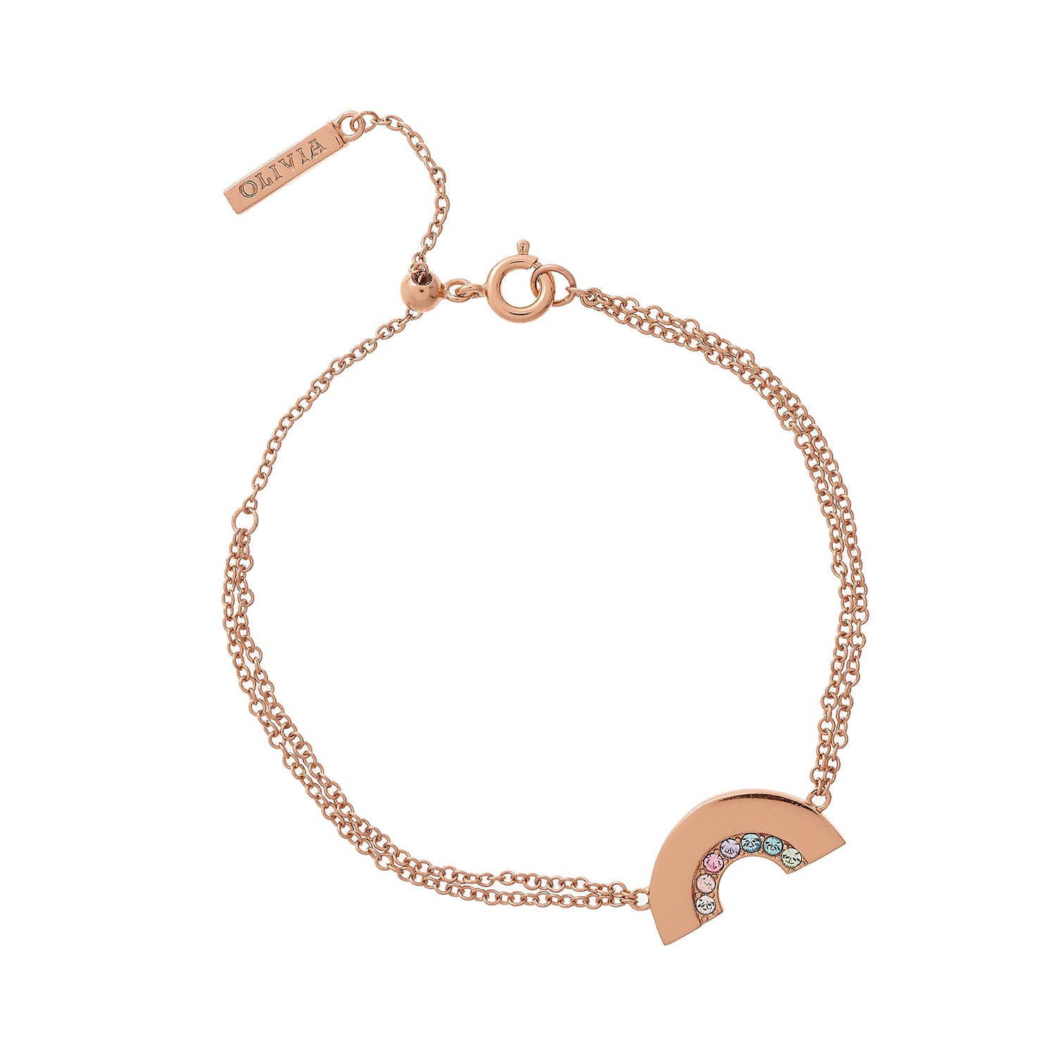 Embrace rainbow reflections with a touch of rose gold with the Olivia Burton Women’s Crystal Rainbow Bracelet in Rose Gold Plated Stainless Steel. This beautiful bracelet features a rose gold plated rainbow-inspired silhouette adorned with a variety of coloured crystals, giving the piece an extra touch of rainbow magic. Size: 190 mm (7.5 in). Material: Rose Gold Plated Stainless Steel. 7 round cut crystals. Colour: Clear. Stone cut: Round Cut.