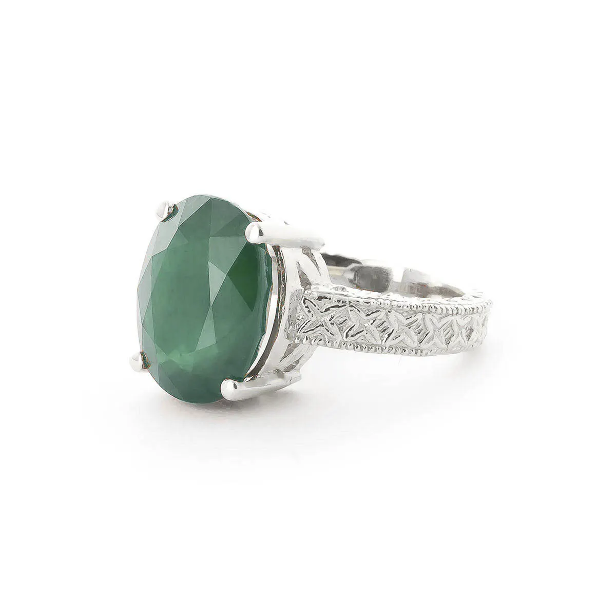 Emerald Ring handcrafted in solid 18ct white gold. Single 6.5 ct genuine emerald. Oval cut. Available from sizes H to Z including half sizes. Size: 13.5 mm (0.53 in). Material: 18ct White Gold. Total metal weight: 8.5 gr. 1 oval cut emerald (10 x 14 mm) = 6.5 ct. Colour: Green. Stone cut: Oval Cut. Anniversary: 20th Anniversary, 35th Anniversary. Birthstone: May.