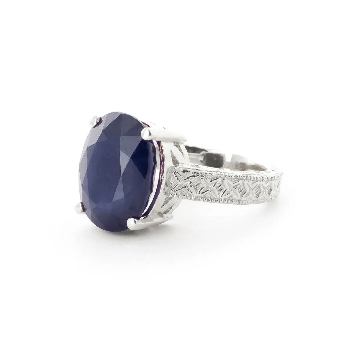 Sapphire Ring handcrafted in solid sterling silver. Single 8.5 ct genuine sapphire. Oval cut. Available from sizes H to Z including half sizes. Size: 13.5 mm (0.53 in). Material: Sterling Silver. Total metal weight: 8.0 gr. 1 oval cut sapphire (10 x 14 mm) = 8.5 ct. Colour: Blue. Stone cut: Oval Cut. Anniversary: 5th Anniversary, 45th Anniversary. Birthstone: September.
