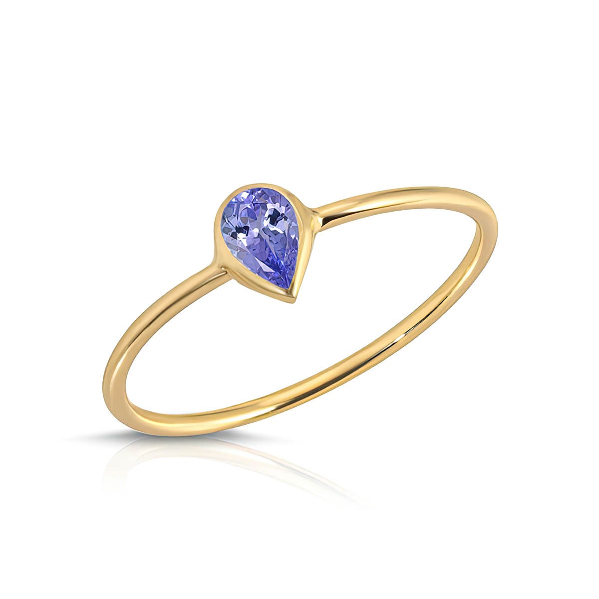 Tanzanite Ring handcrafted in 9ct Gold. Single 0.2 ct genuine tanzanite. Pear cut. Available from sizes H to Z including half sizes. Size: 1 x 19.8 mm (0.04 x 0.78 in). Material: 9ct Gold. Total metal weight: 0.5 gr. 1 pear cut tanzanite (3 x 5 mm) = 0.2 ct. Colour: Purple. Stone cut: Pear cut. Anniversary: 24th Anniversary. Birthstone: December.