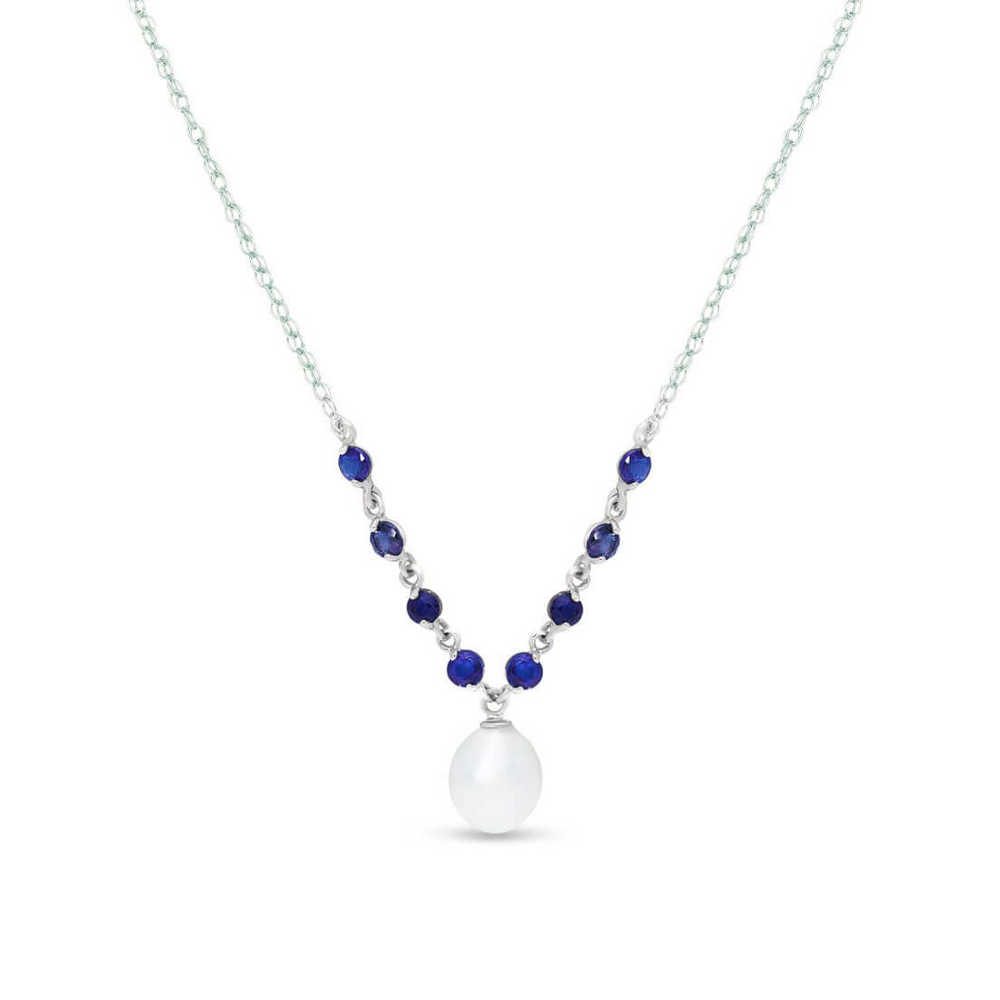 Pearl & Amethyst Pendant Necklace handcrafted in solid white gold. Nine gemstones, total 5 ct. The pendant is suspended from a white gold double link rope chain with spring clasp. Size: 14 mm (0.55 in). Material: 9ct White Gold. Total metal weight: 2.54 gr. 1 freshwater pearl (10 x 8 mm) = 4 ct. 8 round cut amethysts (3 x 3 mm) = 1 ct total. Colour: White. Anniversary: 3rd Anniversary, 30th Anniversary. Birthstone: June.