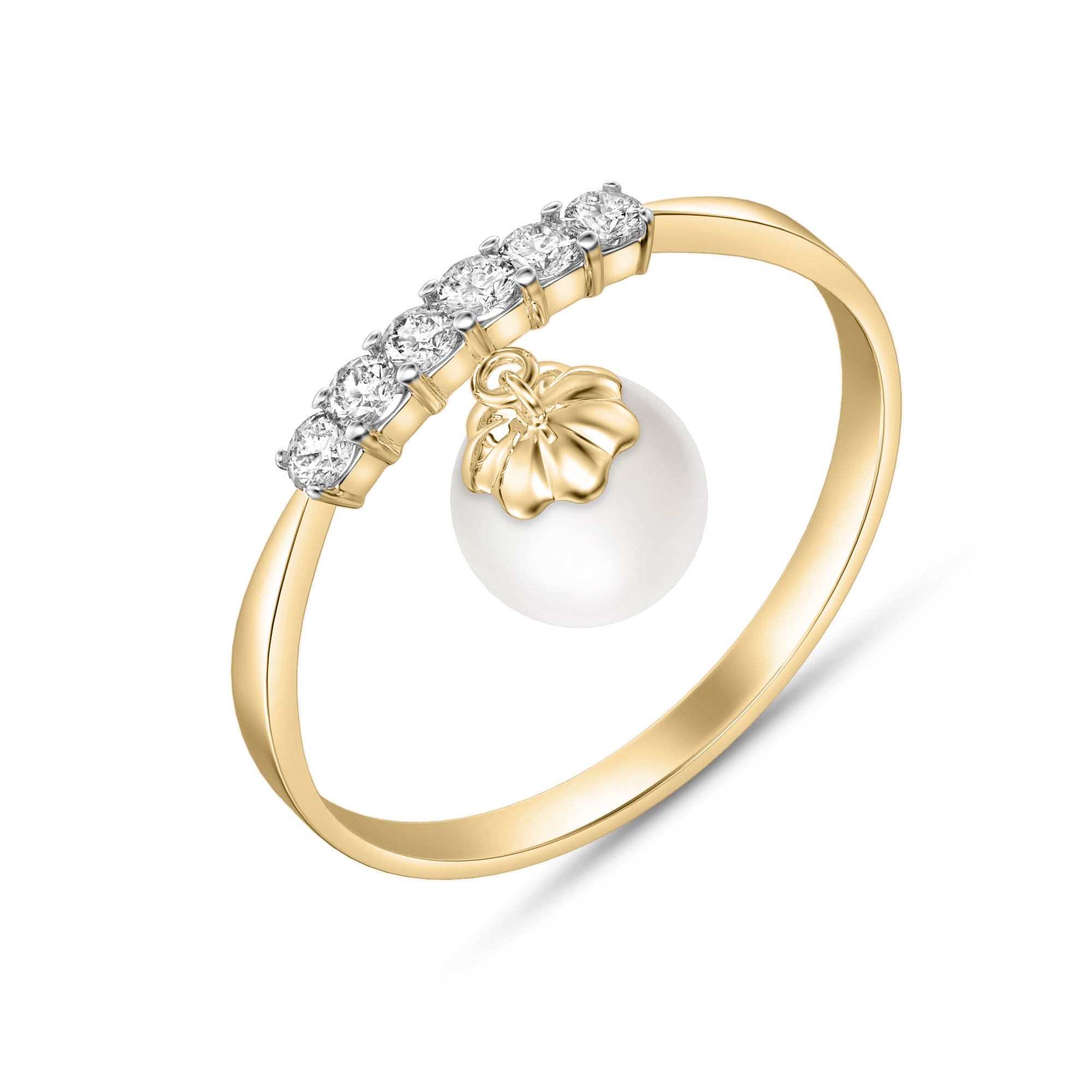 Pearl & Diamond Ring handcrafted in solid gold. Single 2 ct genuine pearl, six diamonds, total 0.1 ct. Available from sizes H to Z including half sizes. Size: 2 mm (0.08 in). Material: 9ct Gold. Total metal weight: 1.1 gr. 1 freshwater pearl (7 x 7 mm) = 2 ct. 6 round cut diamonds (I colour, SI1 clarity) = 0.1 ct total. Colour: White. Anniversary: 3rd Anniversary, 30th Anniversary. Birthstone: June.