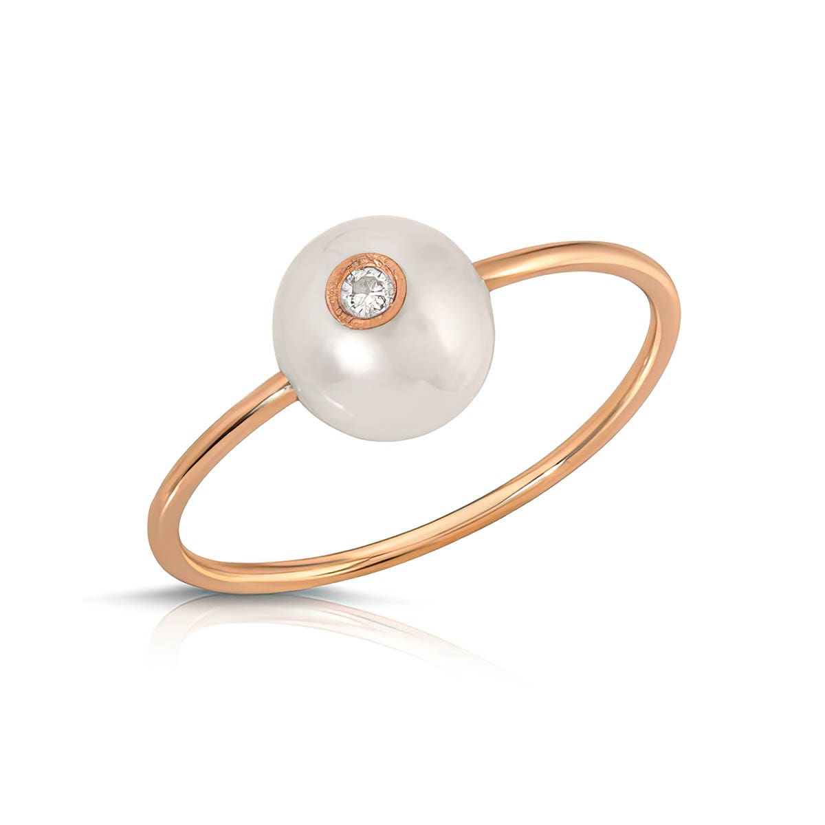 Pearl & Diamond Ring handcrafted in 9ct 9ct rose gold. Single 2 ct genuine pearl, single 0.03 ct diamond. Round cut. Available from sizes H to Z including half sizes. Customers should order this product 4 times larger than their regular size for their chosen finger in order for this to fit. This is due to the size of the gemstones. Size: 1 x 21.1 mm (0.04 x 0.83 in). Material: 9ct Rose Gold. Total metal weight: 0.8 gr. 1 round cut pearl (7 x 7 mm) = 2 ct. 1 round brilliant cut diamond (H colour, I3 clarity) = 0.03 ct. Colour: White. Stone cut: Round cut. Anniversary: 3rd Anniversary, 30th Anniversary. Birthstone: June.