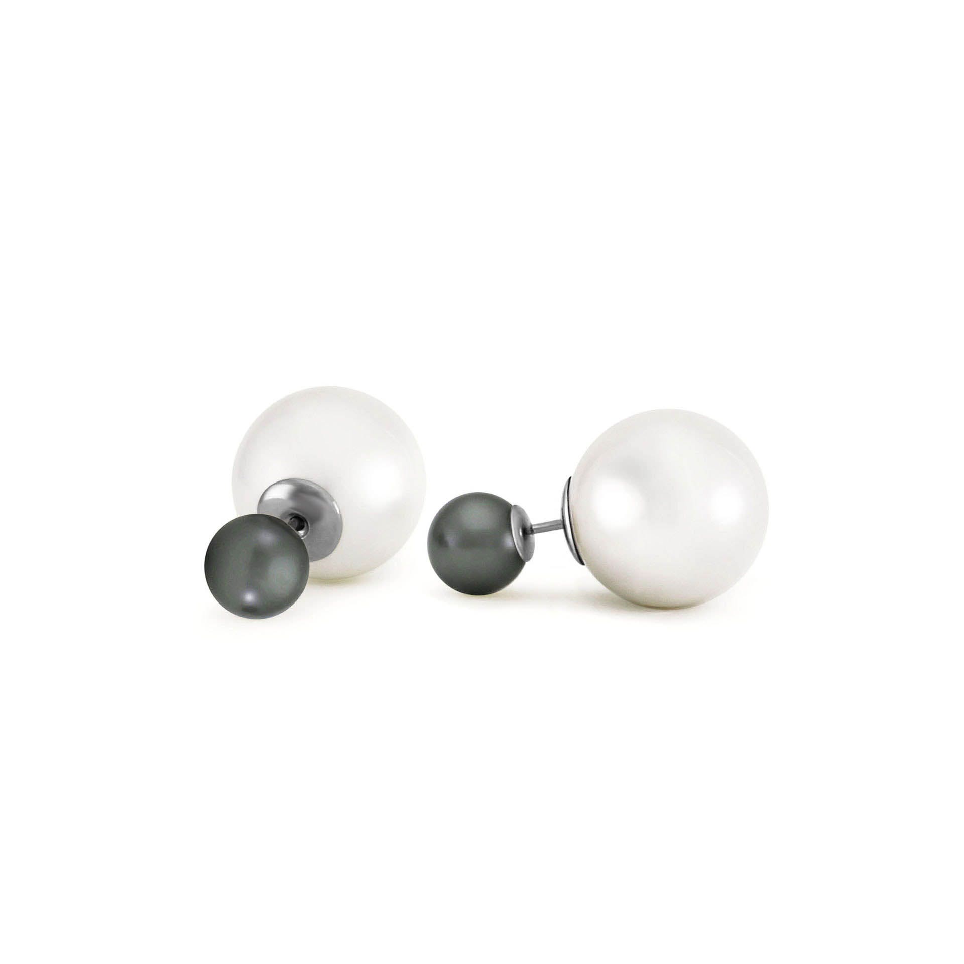 Pearl Stud Earrings handcrafted in solid white gold. Four gemstones, total 71.1 ct for both earrings combined. Post with friction back to fasten. Size: 16 x 22.4 mm (0.63 x 0.88 in). Material: 9ct White Gold. Total metal weight: 0.9 gr. 2 pearls (16 x 16 mm) = 62.5 ct total for pair. 2 pearls (8 x 8 mm) = 8.6 ct total for pair. Colour: White. Anniversary: 3rd Anniversary, 30th Anniversary. Birthstone: June.