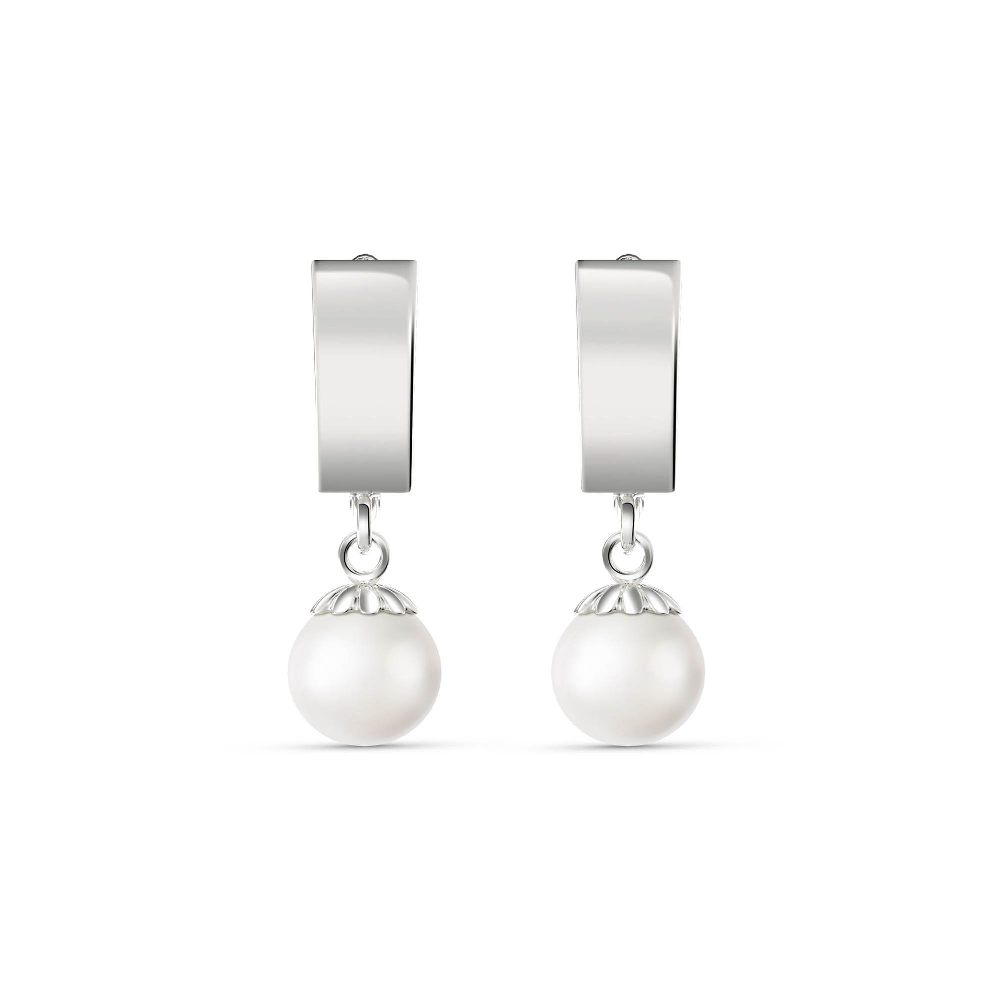 Pearl Leverback Earrings handcrafted in solid white gold. Two genuine pearls, total 4 ct for both earrings combined. Size: 4.8 x 20.8 mm (0.19 x 0.82 in). Material: 9ct White Gold. Total metal weight: 1.5 gr. 2 freshwater pearls (7 x 7 mm) = 4 ct total for pair. Colour: White. Anniversary: 3rd Anniversary, 30th Anniversary. Birthstone: June.
