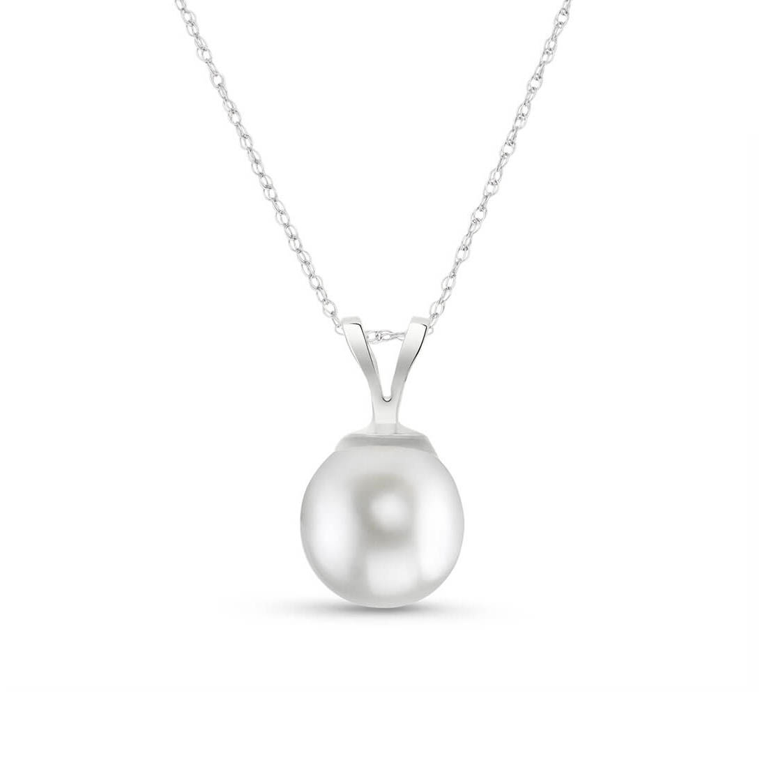 Pearl Pendant Necklace handcrafted in solid white gold. Single 2 ct genuine pearl. The pendant is suspended from a white gold double link rope chain with spring clasp. Size: 7.1 x 11.7 mm (0.28 x 0.46 in). Material: 9ct White Gold. Total metal weight: 1.44 gr. 1 freshwater pearl (7 x 7 mm) = 2 ct. Colour: White. Anniversary: 3rd Anniversary, 30th Anniversary. Birthstone: June.