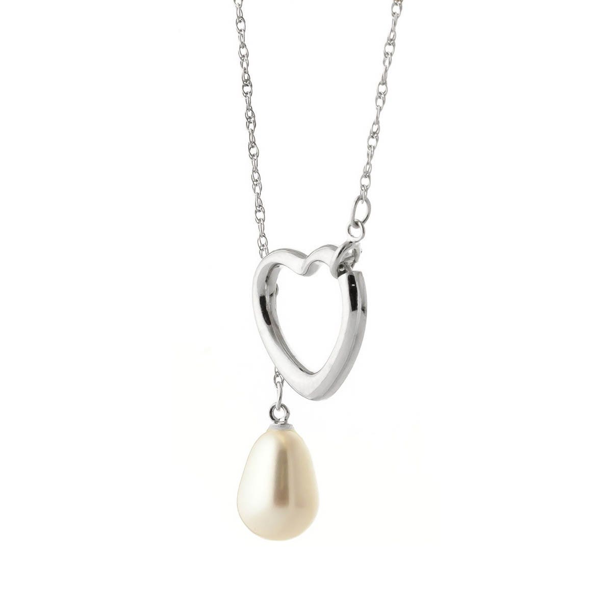 Pearl Pendant Necklace handcrafted in solid white gold. Single 4 ct genuine pearl. The pendant is suspended from a white gold double link rope chain with spring clasp. Size: 16.8 x 14.2 mm (0.66 x 0.56 in). Material: 9ct White Gold. Total metal weight: 2.54 gr. 1 freshwater pearl (10 x 8 mm) = 4 ct. Colour: White. Anniversary: 3rd Anniversary, 30th Anniversary. Birthstone: June.