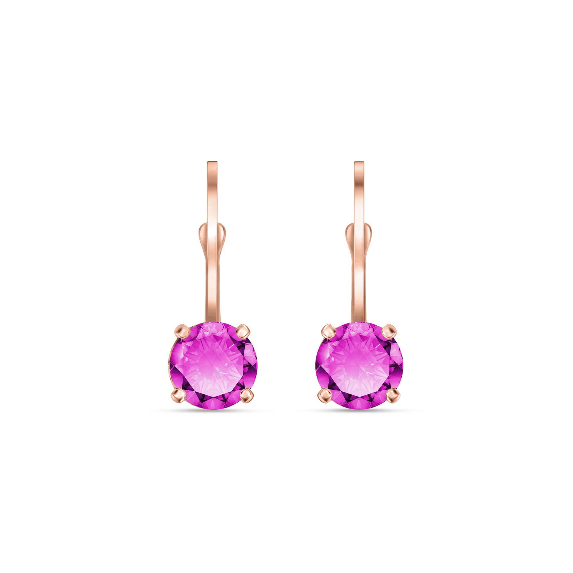 Pink Topaz Leverback Earrings handcrafted in rose gold plated 9ct gold. Two genuine topaz, total 1.3 ct for both earrings combined. Round cut. Size: 5.1 x 14.7 mm (0.2 x 0.58 in). Material: 9ct Rose Gold. Total metal weight: 1.5 gr. 2 round cut pink topaz (5 x 5 mm) = 1.3 ct total for pair. Colour: Pink. Stone cut: Round Cut. Anniversary: 4th Anniversary. Birthstone: November.