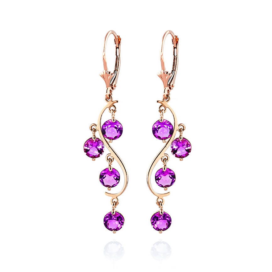 Pink Topaz Chandelierdrop Earrings handcrafted in rose gold plated 9ct gold. Eight genuine topaz, total 4.95 ct for both earrings combined. Round cut. Size: 10.7 x 47.5 mm (0.42 x 1.87 in). Material: 9ct Rose Gold. Total metal weight: 3.0 gr. 8 round cut pink topaz (5 x 5 mm) = 4.95 ct total for pair. Colour: Pink. Stone cut: Round Cut. Anniversary: 4th Anniversary. Birthstone: November.