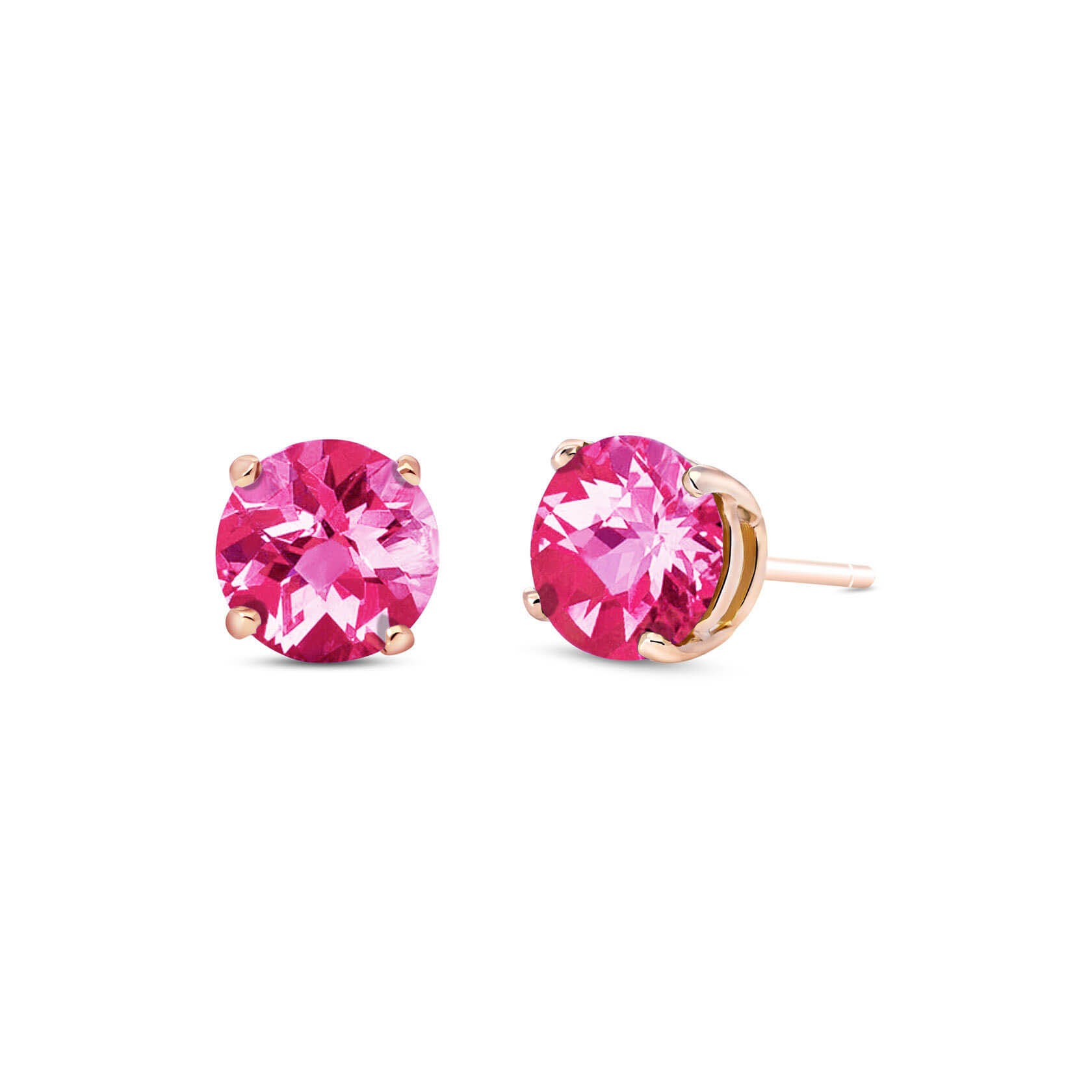 Pink Topaz Stud Earrings handcrafted in rose gold plated 9ct gold. Two genuine topaz, total 3.1 ct for both earrings combined. Round cut. Post with friction back to fasten. Size: 7.1 x 7.1 mm (0.28 x 0.28 in). Material: 9ct Rose Gold. Total metal weight: 1.4 gr. 2 round cut pink topaz (7 x 7 mm) = 3.1 ct total for pair. Colour: Pink. Stone cut: Round Cut. Anniversary: 4th Anniversary. Birthstone: November.