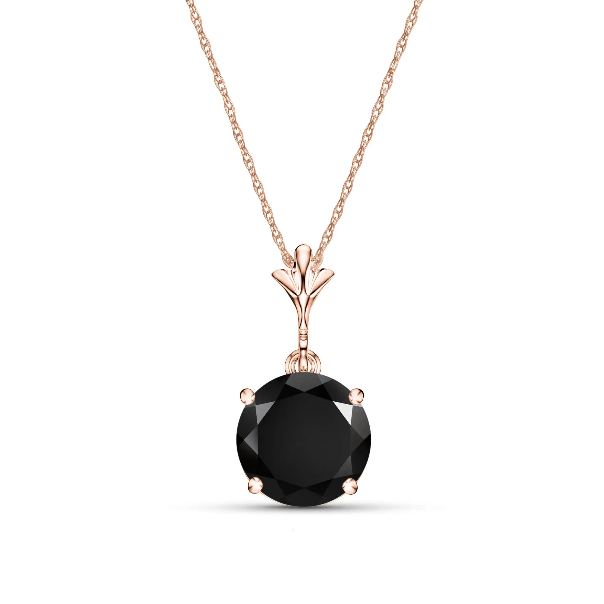 Pendant Necklace handcrafted in rose gold plated 9ct gold. Single 2.38 ct cubic zirconia. Round cut. The pendant hangs from a rose gold double link rope chain with spring clasp. Size: 7.1 x 14.7 mm (0.28 x 0.58 in). Material: 9ct Rose Gold. Total metal weight: 1.64 gr. 1 round cut black cubic zirconia (7 x 7 mm) = 2.38 ct. Colour: Black. Stone cut: Round Cut.