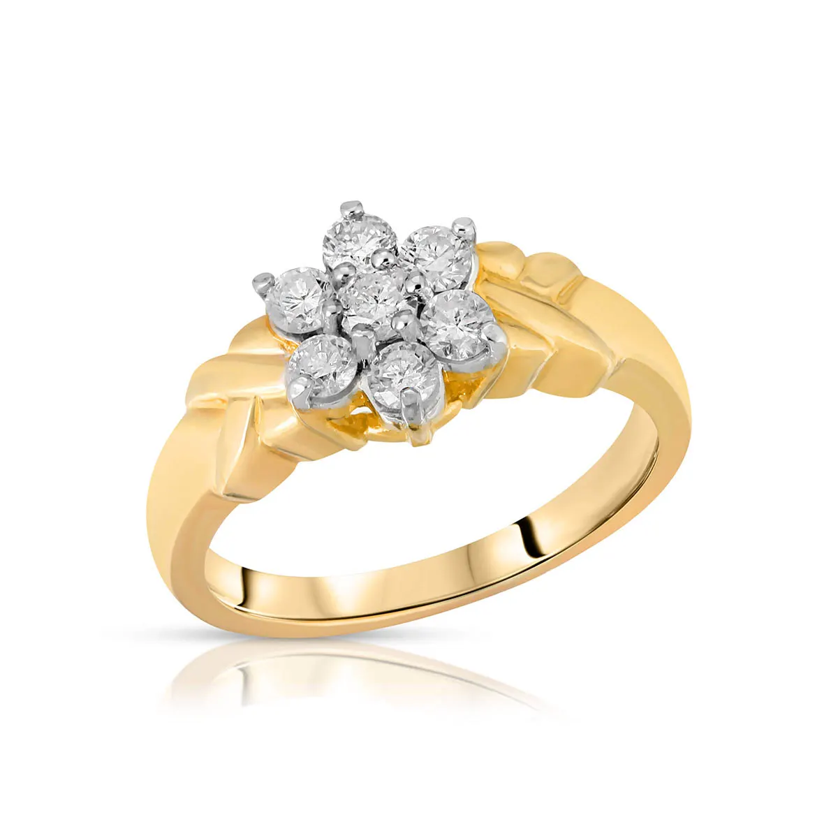 Diamond Ring handcrafted in solid 18ct gold. Seven diamonds, total 0.5 ct. Round cut. Available from sizes H to Z including half sizes. Size: 8.9 mm (0.35 in). Material: 18ct Gold. Total metal weight: 4.4 gr. 7 round cut diamonds (K colour, SI1 clarity) = 0.5 ct total. Colour: Clear. Diamond colour: K. Stone cut: Round Cut. Anniversary: 10th Anniversary, 60th Anniversary. Birthstone: April.