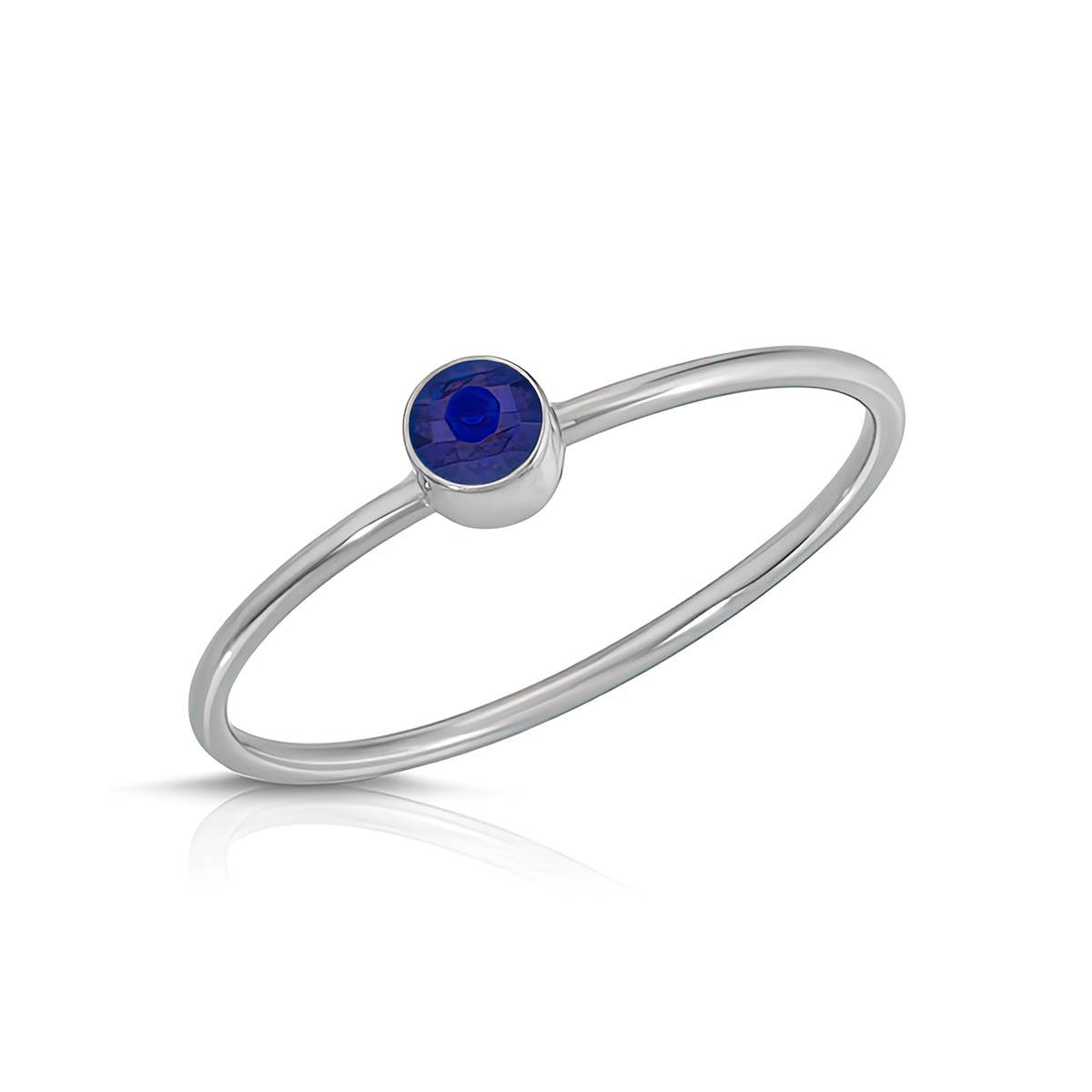 Sapphire Ring handcrafted in 9ct White Gold. Single 0.2 ct genuine sapphire. Round cut. Available from sizes H to Z including half sizes. Size: 1 x 20.6 mm (0.04 x 0.81 in). Material: 9ct White Gold. Total metal weight: 0.5 gr. 1 round cut sapphire (3 x 3 mm) = 0.2 ct. Colour: Blue. Stone cut: Round cut. Anniversary: 5th Anniversary, 45th Anniversary. Birthstone: September.