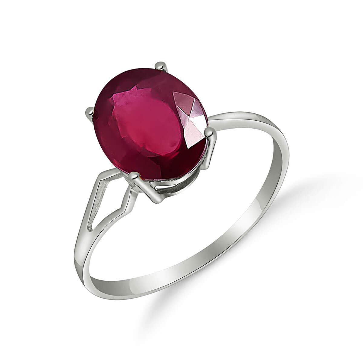 Ruby Ring handcrafted in solid white gold. Single 3.5 ct genuine ruby. Oval cut. Available from sizes H to Z including half sizes. Size: 9.9 mm (0.39 in). Material: 9ct White Gold. Total metal weight: 1.6 gr. 1 oval cut ruby (10 x 8 mm, VS1 clarity) = 3.5 ct. Colour: Red. Stone cut: Oval Cut. Anniversary: 15th Anniversary, 40th Anniversary. Birthstone: July.