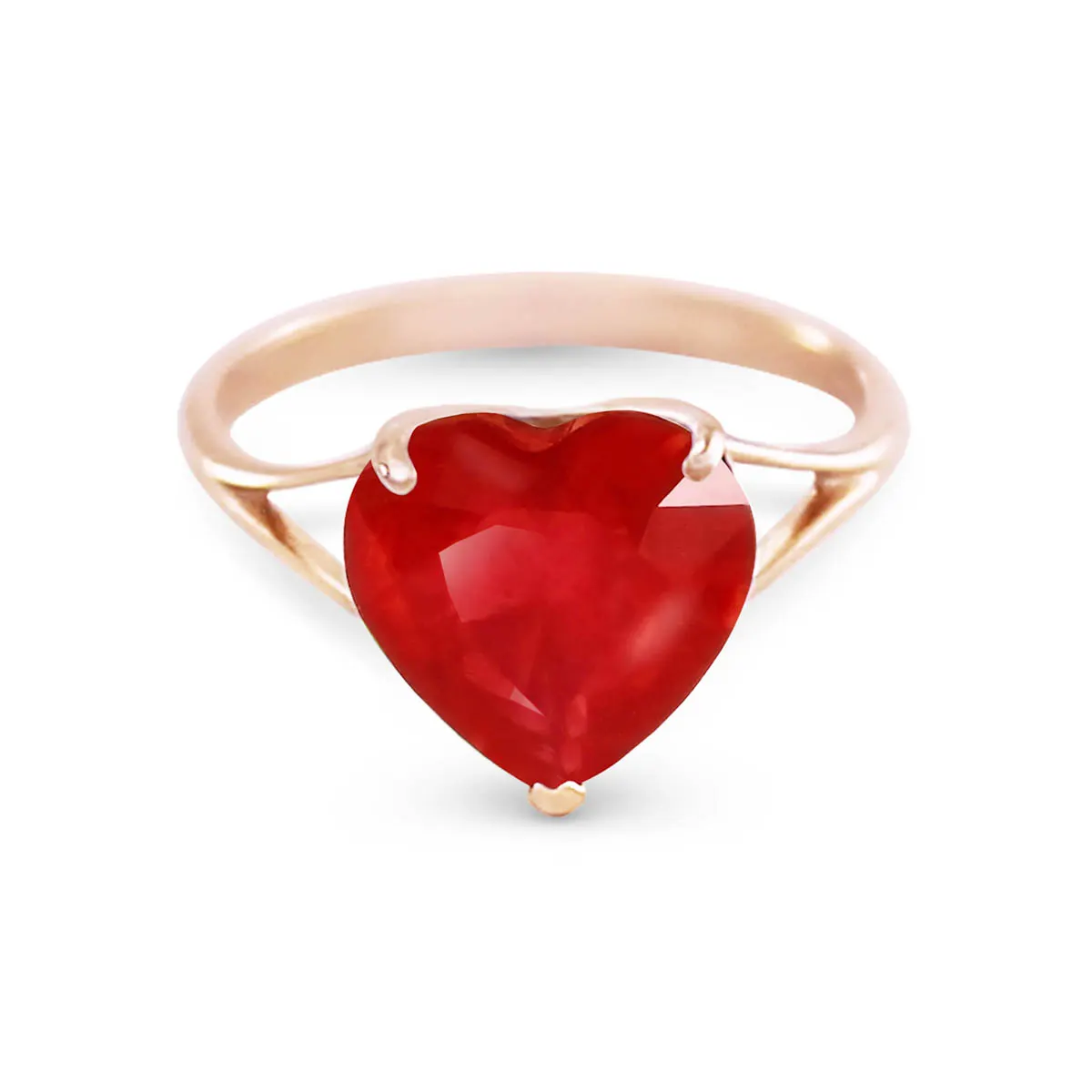 Ruby Ring handcrafted in solid rose gold. Single 4.3 ct genuine ruby. Heart shaped. Available from sizes H to Z including half sizes. Size: 10.4 mm (0.41 in). Material: 9ct Rose Gold. Total metal weight: 2.1 gr. 1 heart shaped ruby (10 x 10 mm, VS1 clarity) = 4.3 ct. Colour: Red. Stone cut: Heart Shaped. Anniversary: 15th Anniversary, 40th Anniversary. Birthstone: July.