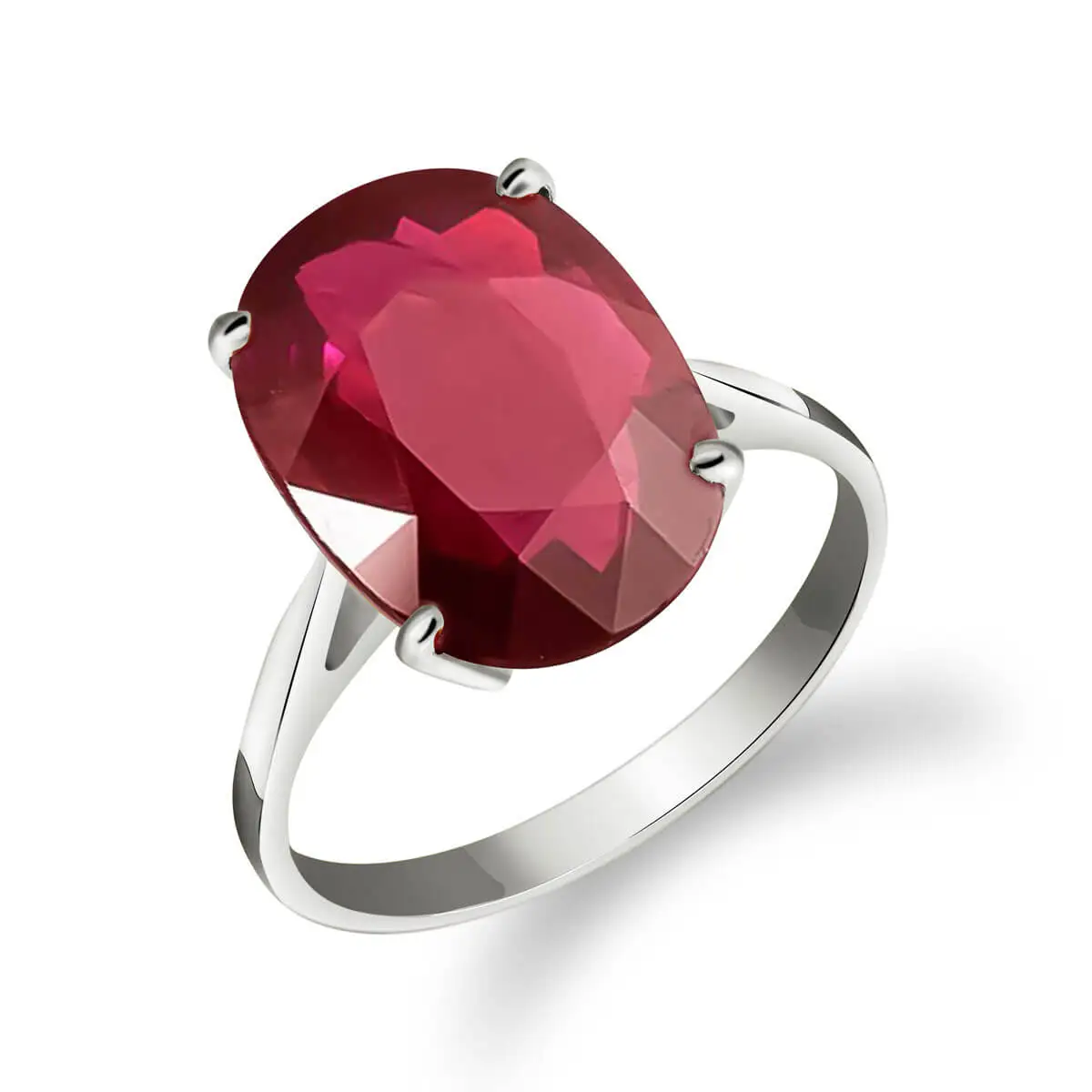 Ruby Ring handcrafted in solid 18ct white gold. Single 7.5 ct genuine ruby. Oval cut. Available from sizes H to Z including half sizes. Size: 14 mm (0.55 in). Material: 18ct White Gold. Total metal weight: 3.5 gr. 1 oval cut ruby (10 x 14 mm, VS1 clarity) = 7.5 ct. Colour: Red. Stone cut: Oval Cut. Anniversary: 15th Anniversary, 40th Anniversary. Birthstone: July.
