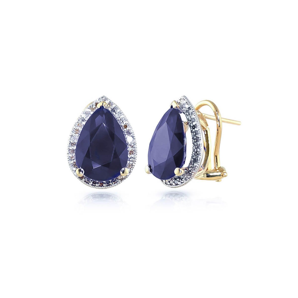 Sapphire & Diamond French Clip Earrings handcrafted in solid gold. Two genuine sapphires, total 10.2 ct, 64 diamonds, total 0.32 ct for both earrings combined. Pear cut. Size: 12.4 x 16 mm (0.49 x 0.63 in). Material: 9ct Gold. Total metal weight: 2.0 gr. 2 pear cut sapphires = 10.2 ct total for pair. 64 round cut diamonds (K colour, I3 clarity) = 0.32 ct total for pair. Colour: Blue. Stone cut: Pear Cut. Anniversary: 5th Anniversary, 45th Anniversary. Birthstone: September.