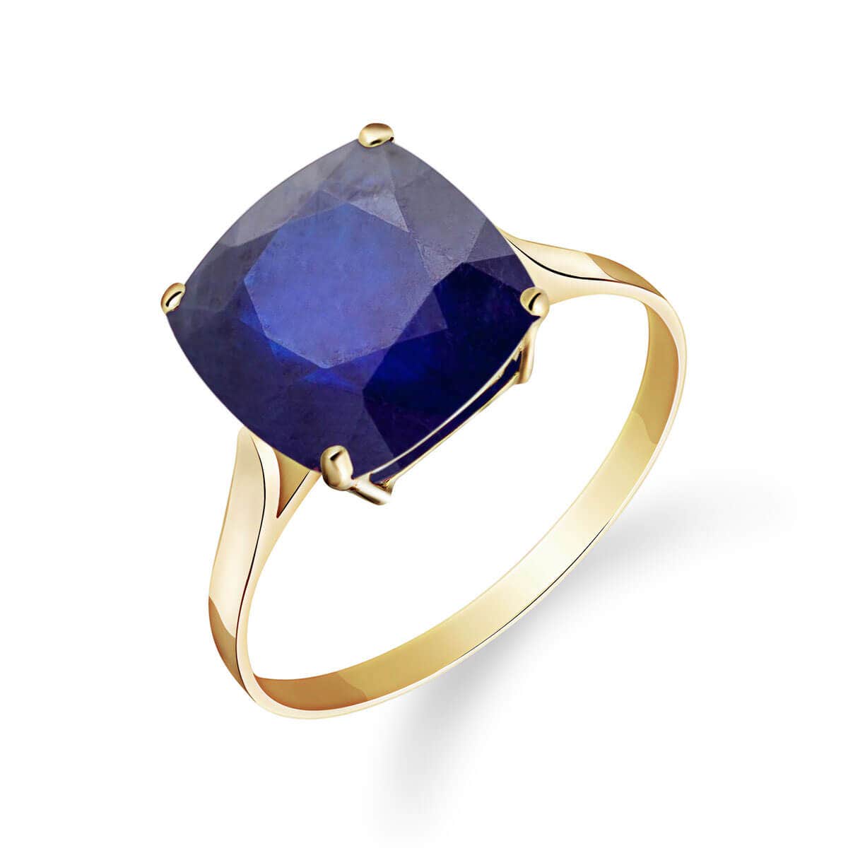 Sapphire Ring handcrafted in solid 18ct gold. Single 4.83 ct genuine sapphire. Cushion cut. Available from sizes H to Z including half sizes. Size: 9.9 mm (0.39 in). Material: 18ct Gold. Total metal weight: 3.1 gr. 1 cushion cut sapphire (10 x 10 mm) = 4.83 ct. Colour: Blue. Stone cut: Cushion Cut. Anniversary: 5th Anniversary, 45th Anniversary. Birthstone: September.