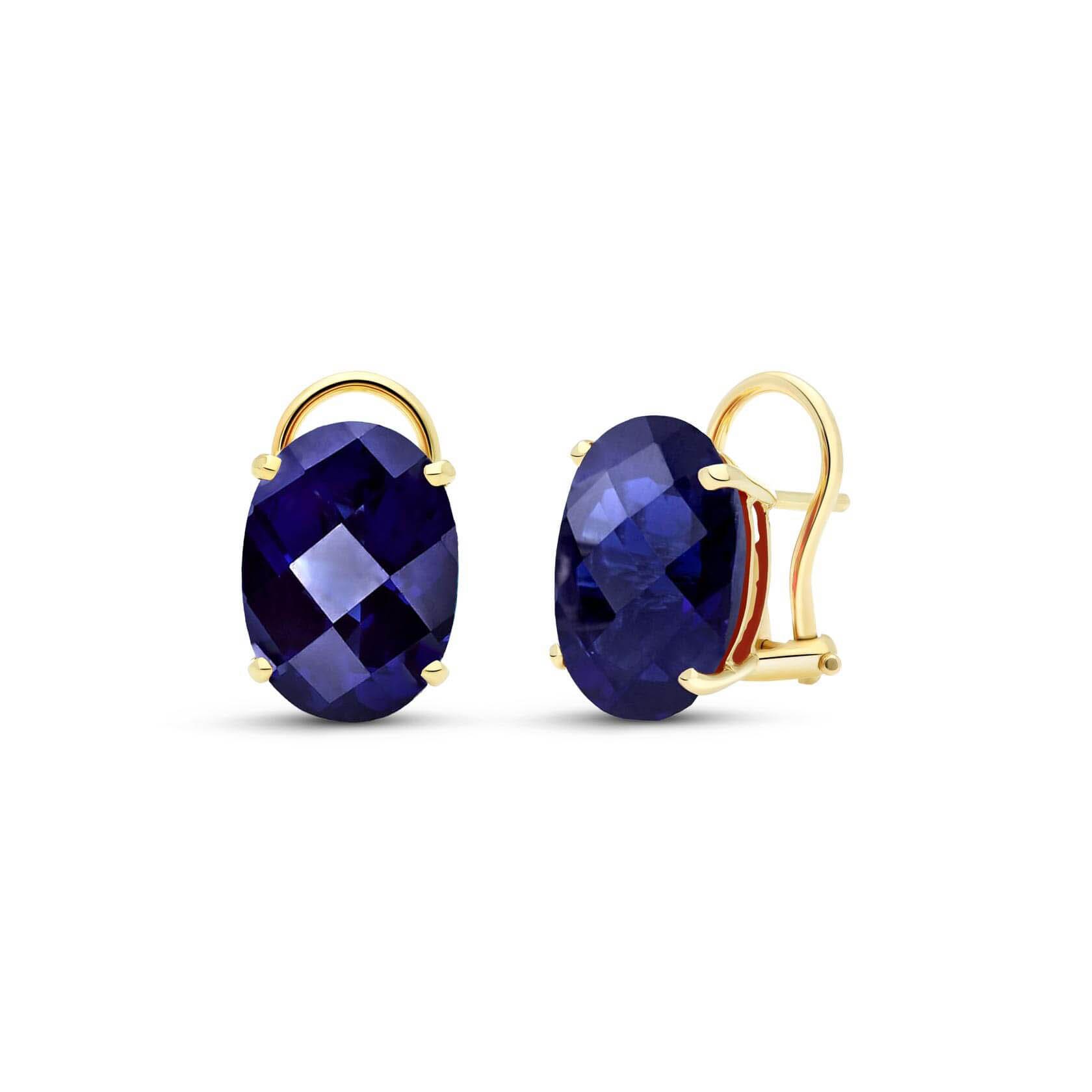 Sapphire Stud Earrings handcrafted in solid gold. Two genuine sapphires, total 17 ct for both earrings combined. Oval cut. Post with friction back to fasten. Size: 10.2 x 14 mm (0.4 x 0.55 in). Material: 9ct Gold. Total metal weight: 4.3 gr. 2 oval cut sapphires (14 x 10 mm) = 17 ct total for pair. Colour: Blue. Stone cut: Oval Cut. Anniversary: 5th Anniversary, 45th Anniversary. Birthstone: September.