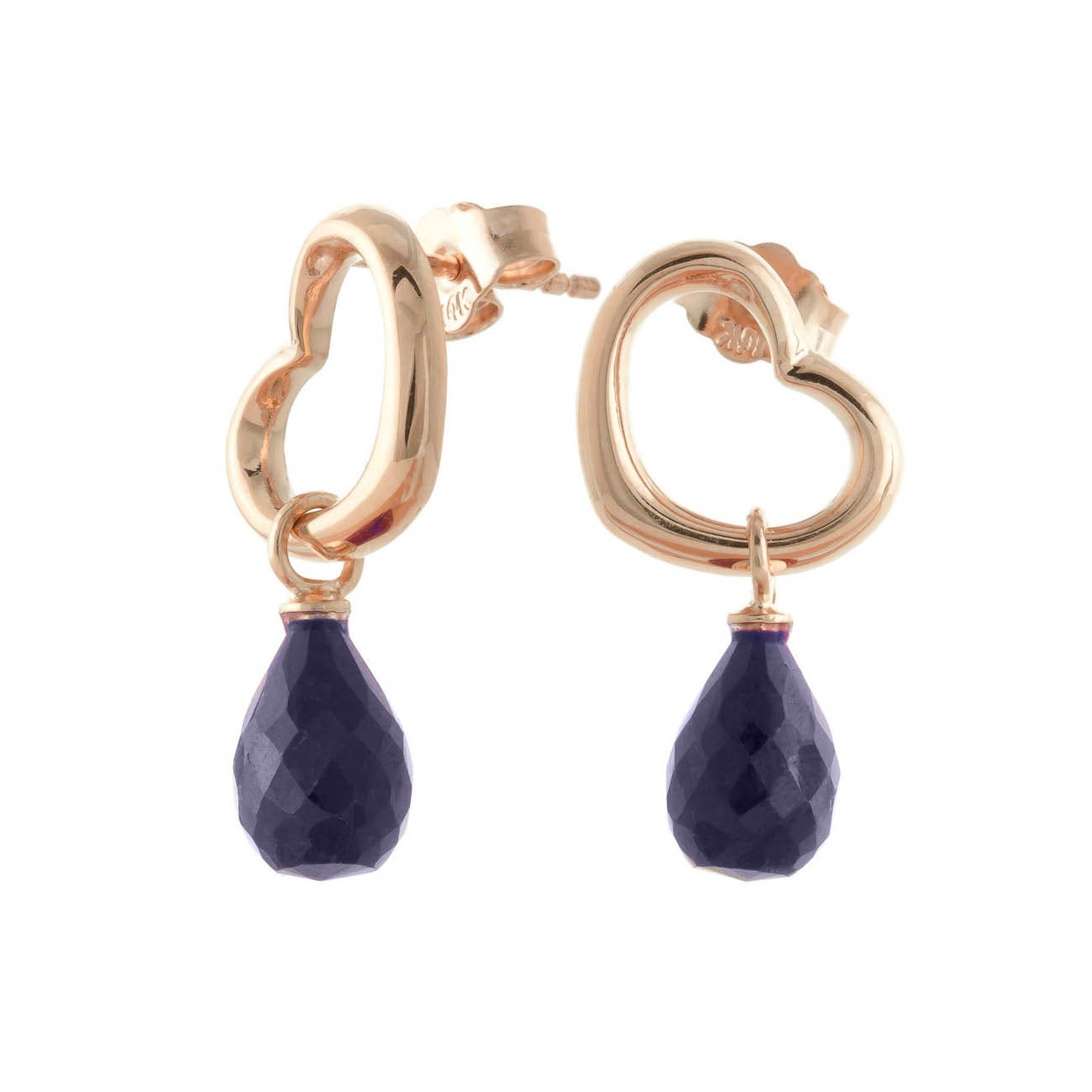 Sapphire Stud Earrings handcrafted in rose gold plated 9ct gold. Two genuine sapphires, total 6.6 ct for both earrings combined. Pear cut. Post with friction back to fasten. Size: 13 x 24.1 mm (0.51 x 0.95 in). Material: 9ct Rose Gold. Total metal weight: 2.7 gr. 2 pear cut sapphires (9 x 6 mm) = 6.6 ct total for pair. Colour: Blue. Stone cut: Pear Cut. Anniversary: 5th Anniversary, 45th Anniversary. Birthstone: September.