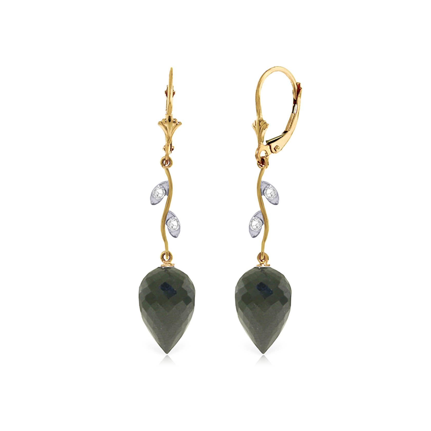 Spinel & Diamond Chandelier Drop Earrings handcrafted in solid gold. Two genuine spinel, total 24.5 ct, four diamonds, total 0.02 ct for both earrings combined. Pointed briolette cut. Size: 9.7 x 47.8 mm (0.38 x 1.88 in). Material: 9ct Gold. Total metal weight: 5.5 gr. 2 pointed briolette cut spinel (15 x 10 mm) = 24.5 ct total for pair. 4 round cut diamonds (K colour, I3 clarity) = 0.02 ct total for pair. Colour: Black. Stone cut: Pointed Briolette Cut.