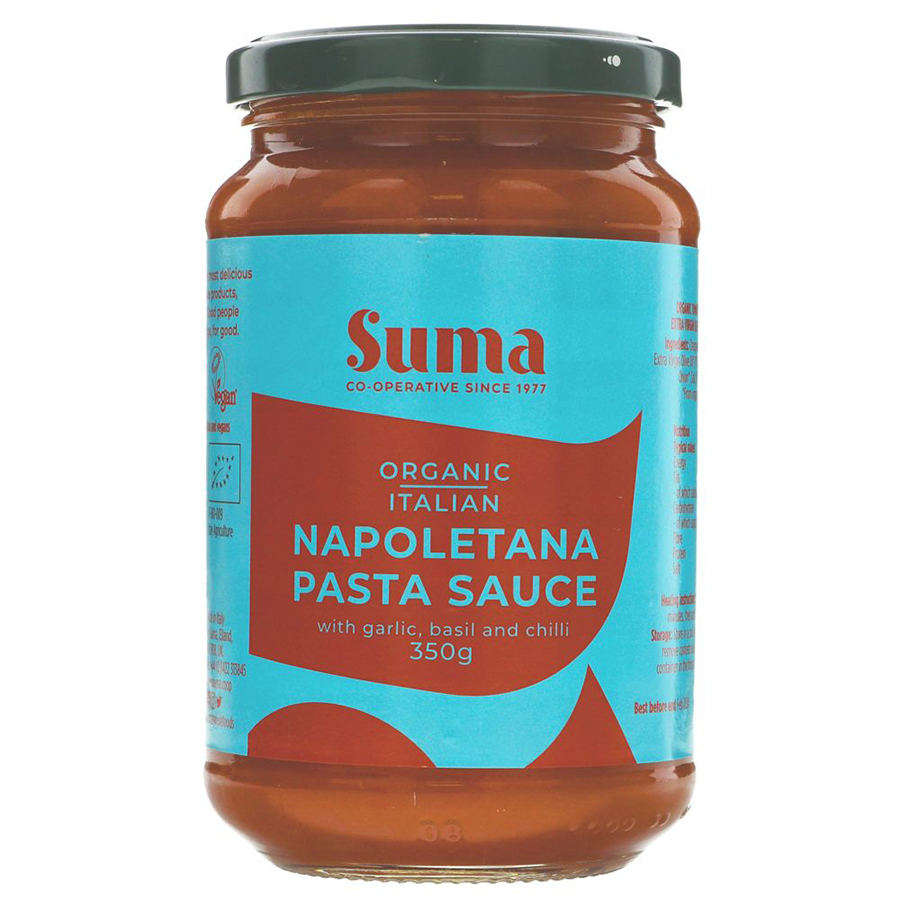 Made in Italy from fresh organic ingredients this Napoletana sauce from Suma is a traditional recipe with garlic basil and a little bit of chilli to give it a lift. This product is Gluten-free is Organic and is Vegan.350g.