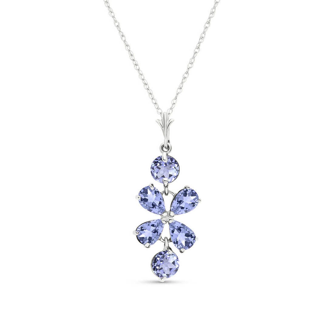 Tanzanite Pendant Necklace handcrafted in solid white gold. Six gemstones, total 3.15 ct. Pear cut. The pendant is suspended from a white gold double link rope chain with spring clasp. Size: 11.9 x 30.5 mm (0.47 x 1.2 in). Material: 9ct White Gold. Total metal weight: 2.34 gr. 4 pear cut tanzanites (6 x 4 mm) = 2.15 ct total. 2 round cut tanzanites (5 x 5 mm) = 1 ct total. Colour: Blue. Stone cut: Pear Cut. Anniversary: 24th Anniversary. Birthstone: December.