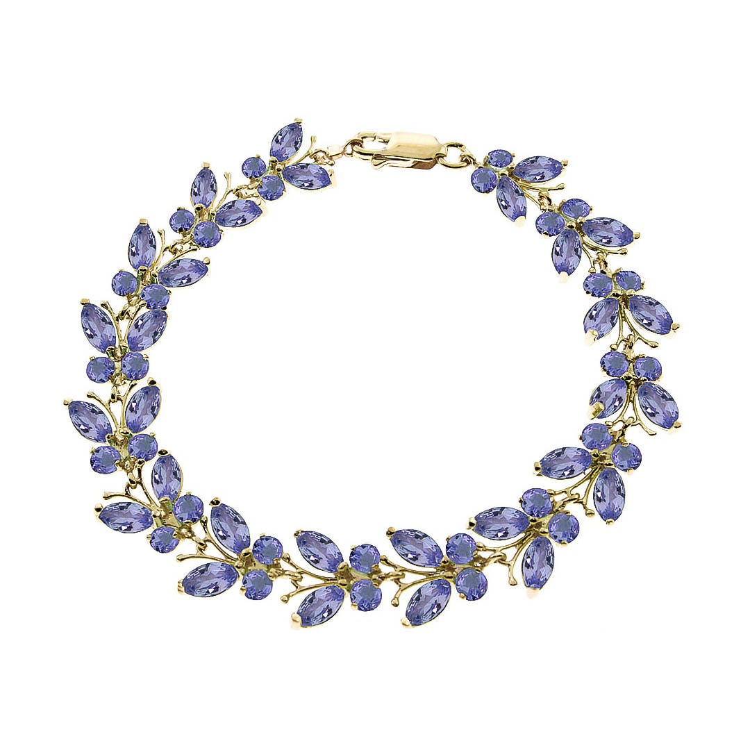 Tanzanite Butterfly Bracelet handcrafted in solid gold. 60 gemstones, total 7.8 ct. Marquise cut. Fastened by gold lobster clasp. Fits wrist up to 8.5″. Size: 10.7 mm (0.42 in). Material: 9ct Gold. Total metal weight: 10.0 gr. 30 marquise cut tanzanites (6 x 3 mm) = 4.8 ct total. 30 round cut tanzanites (3 x 3 mm) = 3 ct total. Colour: Blue. Stone cut: Marquise Cut. Anniversary: 24th Anniversary. Birthstone: December.