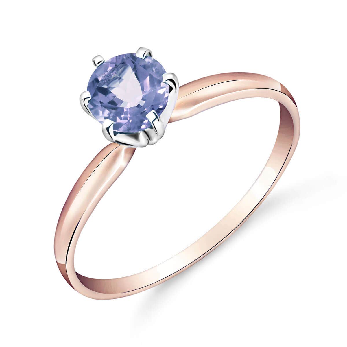 Tanzanite Ring handcrafted in solid 18ct rose gold. Single 0.65 ct genuine tanzanite. Round cut. Available from sizes H to Z including half sizes. Size: 5.8 mm (0.23 in). Material: 18ct Rose Gold. Total metal weight: 2.0 gr. 1 round cut tanzanite (5 x 5 mm) = 0.65 ct. Colour: Blue. Stone cut: Round Cut. Anniversary: 24th Anniversary. Birthstone: December.