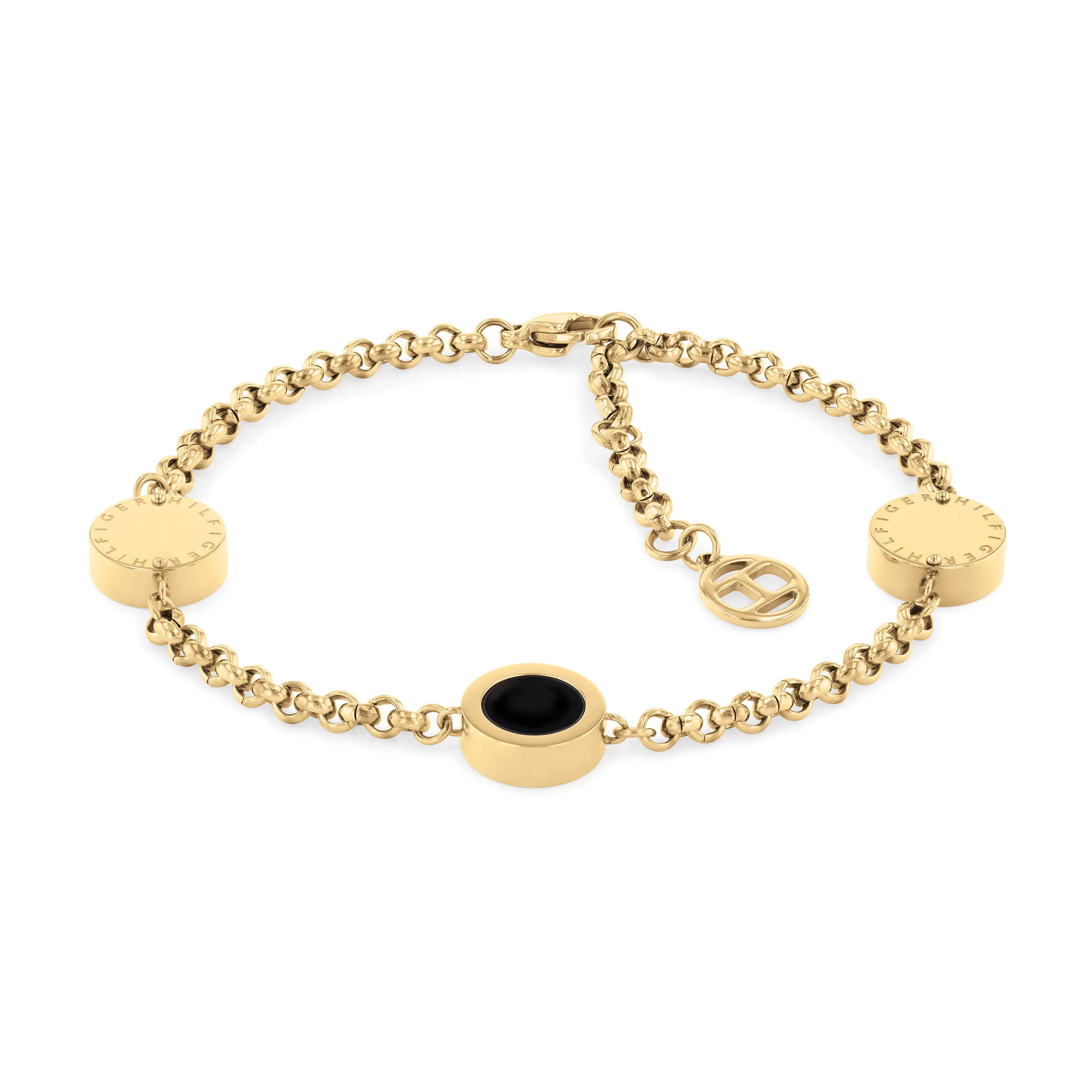 Women’s Tommy Hilfiger Bracelet in 9ct gold plated stainless steel. Size: 170 mm (6.7 in). Material: Gold Plated Stainless Steel.