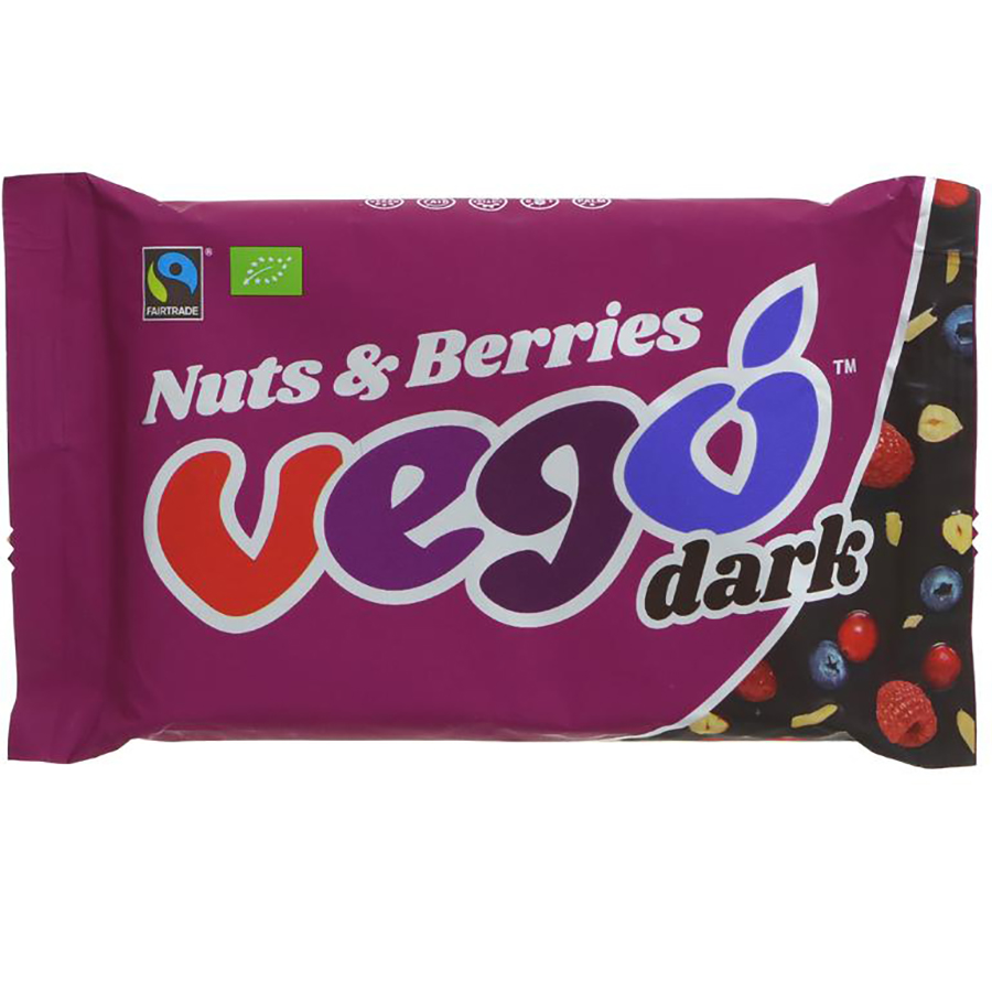 This delicious new Dark Chocolate Nuts & Berries Bar wraps blueberry raspberry and hazelnut pieces in a rich dark chocolate coating. Gluten-free vegan palm-oil free and soya-free it is organic and made from high quality fairly traded ingredients.