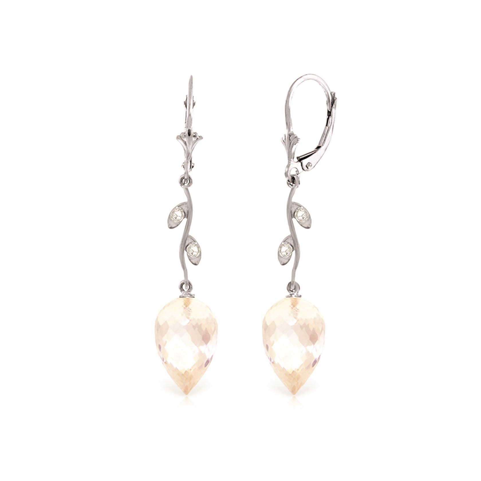 White Topaz & Diamond Chandelier Drop Earrings handcrafted in solid white gold. Two genuine topaz, total 24.5 ct, four diamonds, total 0.02 ct for both earrings combined. Pointed briolette cut. Size: 9.7 x 47.8 mm (0.38 x 1.88 in). Material: 9ct White Gold. Total metal weight: 5.6 gr. 2 pointed briolette cut white topaz (15 x 10 mm) = 24.5 ct total for pair. 4 round cut diamonds (K colour, I3 clarity) = 0.02 ct total for pair. Colour: White. Stone cut: Pointed Briolette Cut. Anniversary: 4th Anniversary. Birthstone: November.